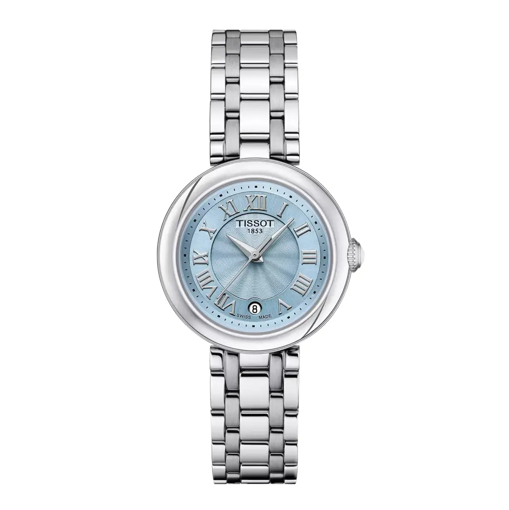 Tissot Bellissima Small Lady воплощает в себе элегантность женских часов, объединяя утончённость, классический стиль и современную швейцарскую точность. Компактный 26-мм корпус из нержавеющей стали 316L дополнен роскошным синим перламутровым циферблатом с мягкой текстурой и римскими цифрами, создающими романтичный и вне-временной образ. Слегка выпуклое сапфировое стекло обеспечивает высокую устойчивость к царапинам и подчёркивает изящные детали циферблата.