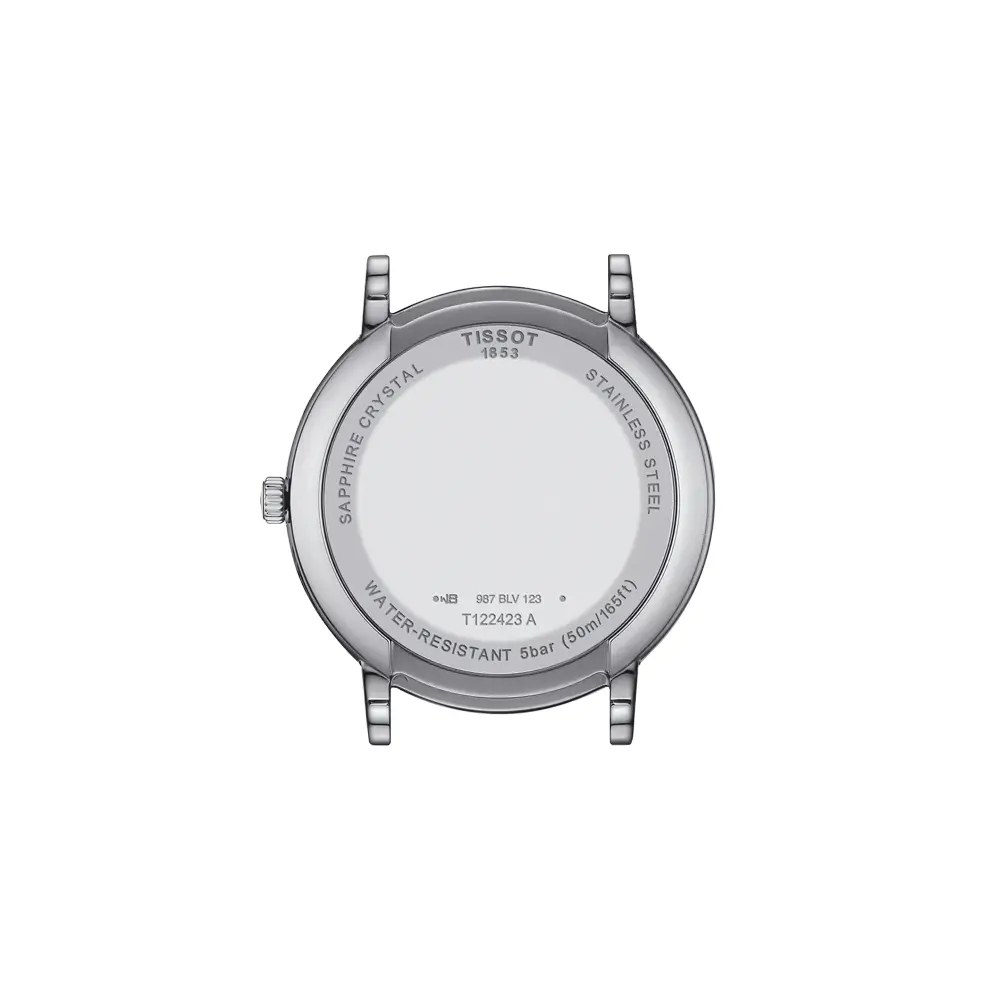 Мужские часы Tissot Carson Premium Moonphase T122.423.11.033.00 воплощают классическую элегантность и вне времени актуальный швейцарский стиль. Круглый корпус из нержавеющей стали диаметром 40 мм выглядит сбалансированно и утончённо, что делает модель подходящей как для официальных мероприятий, так и для повседневной носки. Чистые линии и гармоничные пропорции подчёркивают традиционный характер коллекции T-Classic.