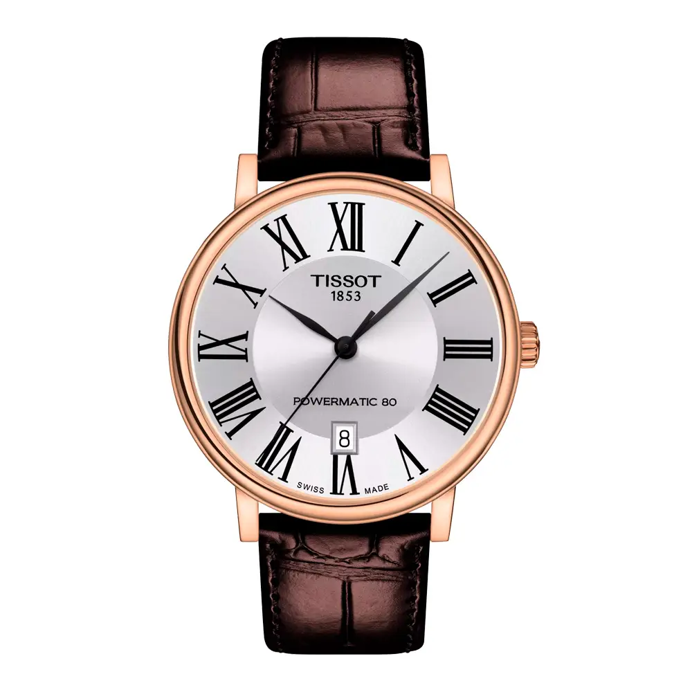 Tissot Carson Premium Powermatic 80 — это элегантные мужские часы, сочетающие классический стиль и современные технологии. Модель оснащена корпусом из нержавеющей стали диаметром 40 мм с розово-золотым PVD-покрытием, серебристым циферблатом с римскими цифрами и коричневым кожаным ремешком с классической застёжкой. Выпуклое сапфировое стекло с антибликовым покрытием придаёт часам изысканный вид и защищает от царапин.
