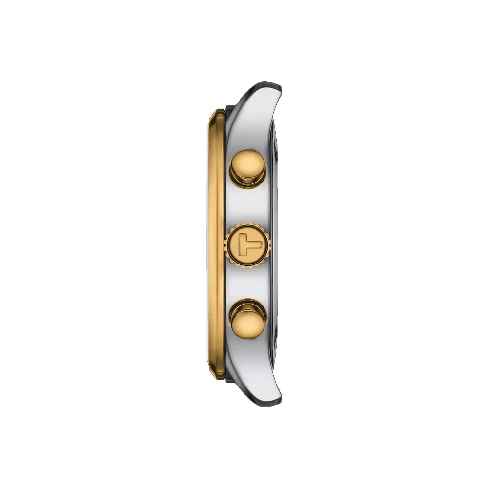Tissot Chrono XL Classic сочетает в себе смелый дизайн и швейцарскую точность, предлагая идеальный баланс между стилем и функциональностью. Корпус диаметром 45 мм из нержавеющей стали с жёлтым PVD-покрытием эффектно контрастирует с тёмно-синим циферблатом, создавая образ современного шика.
