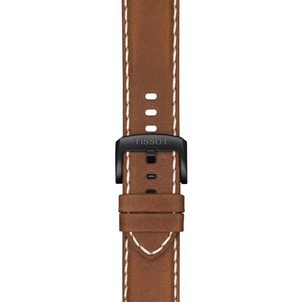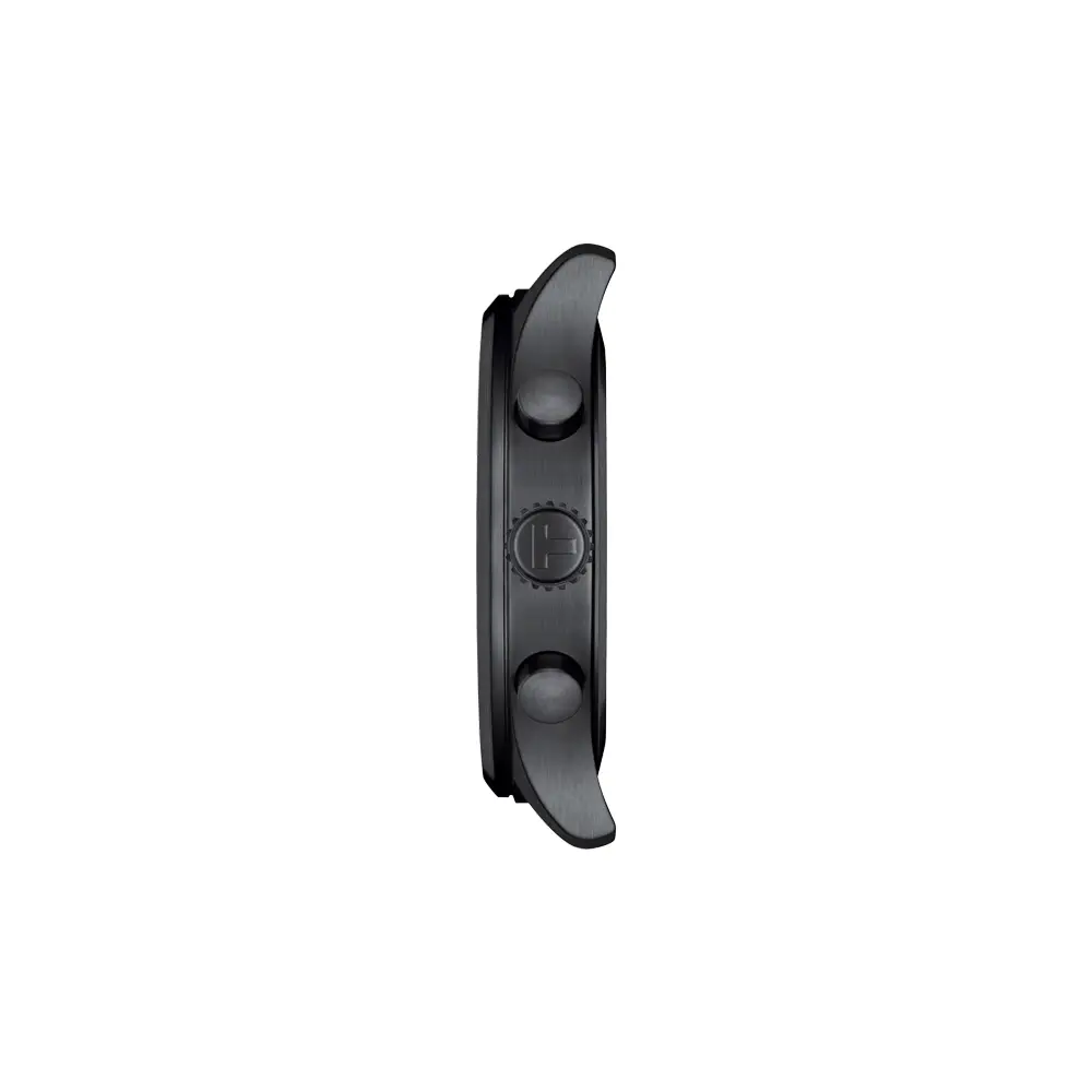 Корпус 45 мм выполнен из нержавеющей стали 316L с черным PVD-покрытием, подчеркивающим спортивный стиль и устойчивость к износу. Коричневый кожаный ремешок добавляет модели классические элементы и комфорт при повседневной носке. Водозащита 100 м (10 ATM) позволяет без опасений контактировать с водой в обычных ситуациях.