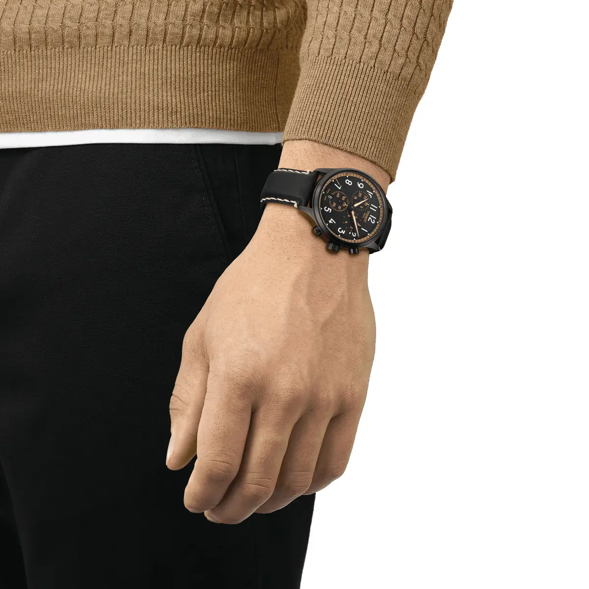 Tissot Chrono XL Vintage T116.617.36.052.02 сочетает ретро-элегантность, выразительный стиль и швейцарскую точность. Корпус из нержавеющей стали с чёрным PVD-покрытием диаметром 45 мм дополняет чёрный циферблат с тремя счётчиками хронографа и бежевыми стрелками и метками, создающими винтажный облик. Коричневый кожаный ремешок с контрастной прострочкой придаёт часам утончённый и классический вид.
