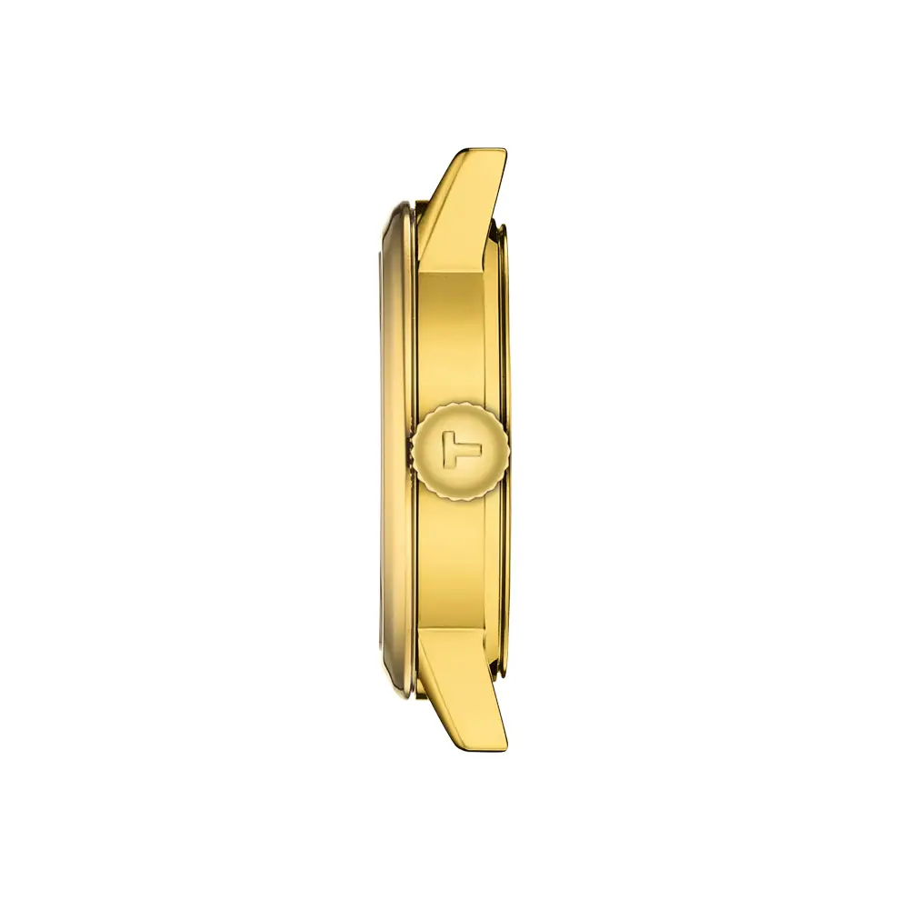 Tissot Classic Dream 28mm — это гармоничное сочетание классической элегантности и утончённого золотого акцента. Корпус диаметром 28 мм из нержавеющей стали 316L с жёлто-золотым PVD-покрытием придаёт модели ювелирный характер, а сапфировое стекло и водозащита до 5 бар обеспечивают практичность в повседневном использовании.