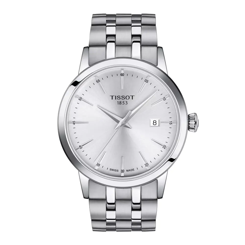 Модель Tissot Classic Dream Gent (Ref. T129.410.11.031.00) представляет собой элегантное воплощение классических мужских часов, подходящих как для повседневного, так и для делового стиля. На серебристом циферблате размещена чёткая аналоговая индикация и дата на позиции 3 часов, защищённые сапфировым стеклом с высокой стойкостью к царапинам. Образ дополняет стальной браслет с раскладной застёжкой.