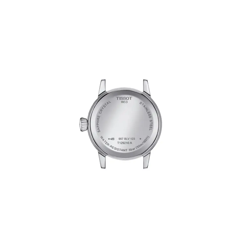 Внутри установлен швейцарский кварцевый механизм ETA F04.115, обеспечивающий точную и стабильную работу при минимальном обслуживании. Часы оснащены датой на отметке 3 часа и полезным индикатором разряда батареи (EOL). Модель T129.210.11.013.00 сочетает швейцарское качество, элегантную простоту и практичность, становясь идеальными женскими часами на любой случай.