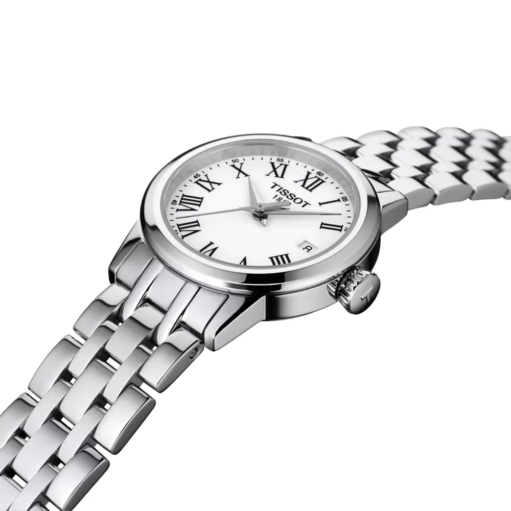 Tissot Classic Dream Lady сочетает в себе вневременную элегантность и изысканный женственный стиль, благодаря чему подходит как для повседневного ношения, так и для торжественных событий. Компактный 28-мм корпус из стали 316L в сочетании с белым циферблатом с римскими цифрами создаёт классический, утончённый образ. Завершает дизайн стальной браслет с застёжкой-«бабочкой», обеспечивающий комфорт и надёжную посадку.