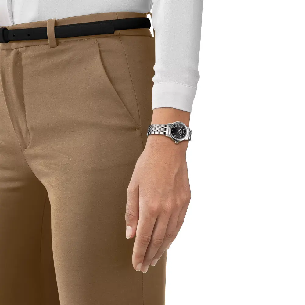 Модель Tissot Classic Dream Lady сочетает в себе утончённый классический стиль и современную швейцарскую точность. Корпус из нержавеющей стали 316L диаметром 28 мм создаёт компактный, элегантный силуэт, идеально подходящий для более тонкого женского запястья. Чёрный циферблат с римскими цифрами и тонкими стрелками смотрится изысканно и отличается отличной читаемостью, а сапфировое стекло обеспечивает высокую устойчивость к царапинам.