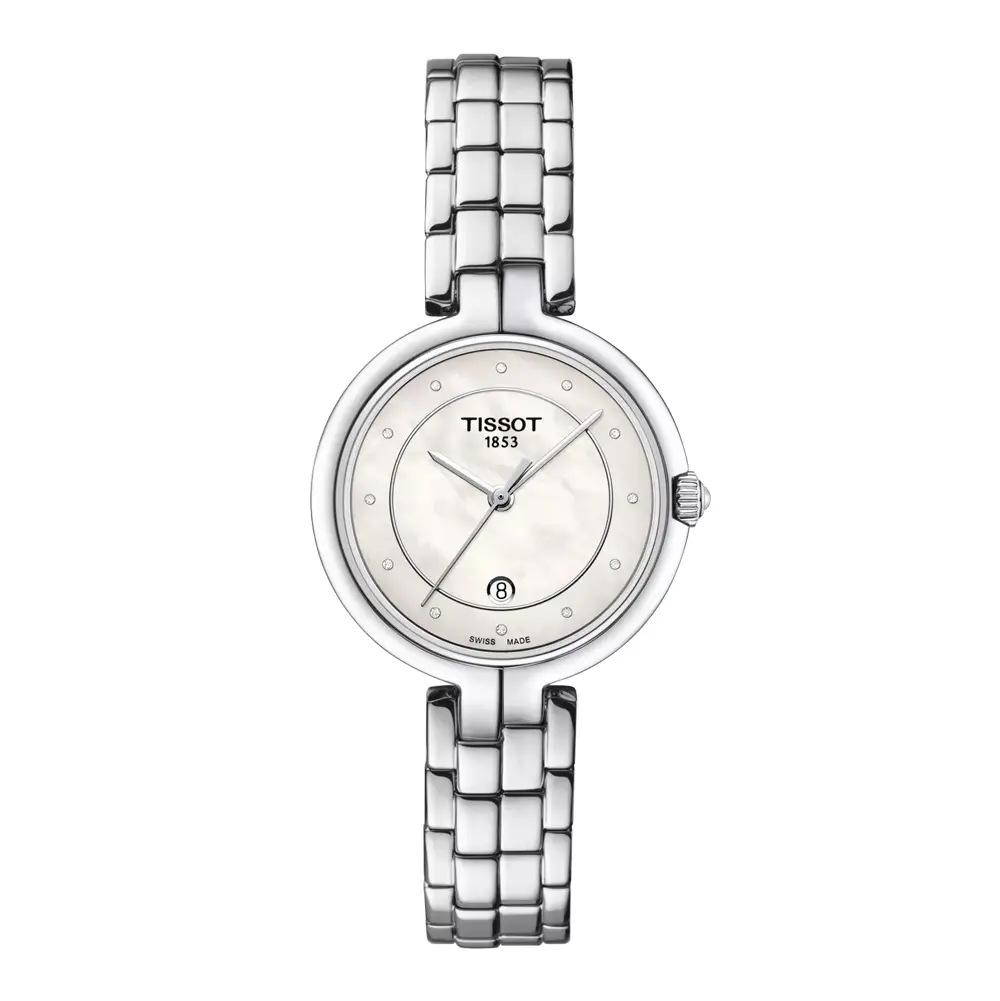 Модель Tissot Flamingo T094.210.11.116.01 сочетает швейцарскую точность и вечную элегантность, оставаясь идеальным выбором как на каждый день, так и для особых случаев. Нежный перламутровый циферблат с 12 бриллиантовыми метками (VS-SI) придаёт образу роскошный характер.