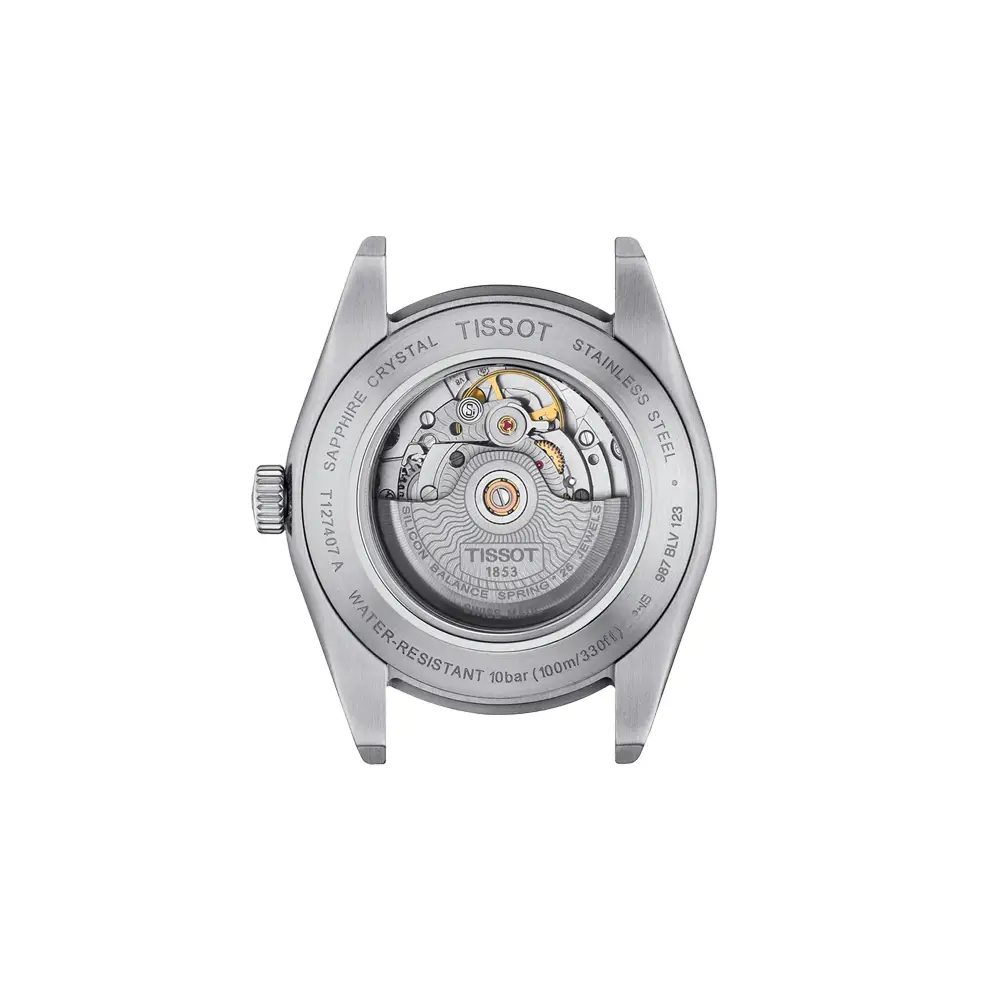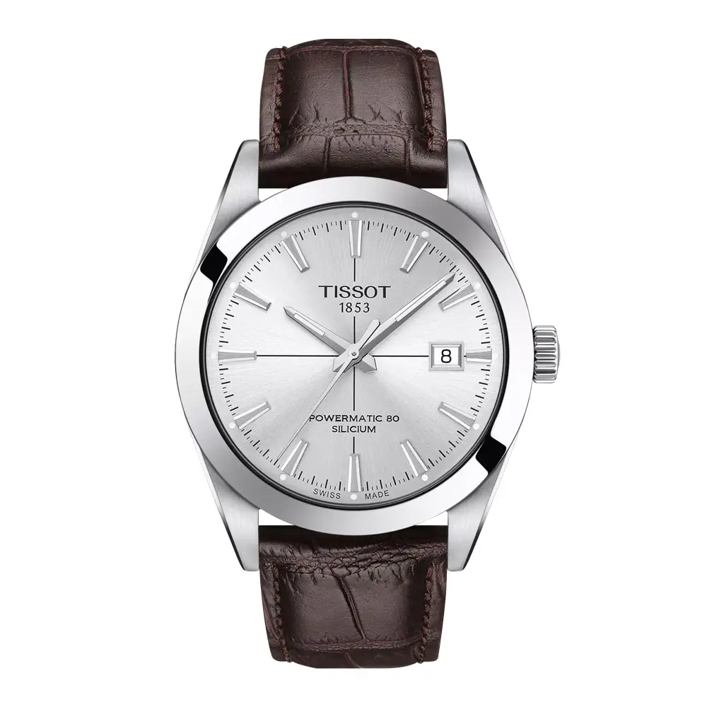 Модель Tissot Gentleman Powermatic 80 Silicium T127.407.16.031.01 сочетает в себе классическую элегантность и современные технологии. Корпус из нержавеющей стали 316L диаметром 40 мм обеспечивает выразительное, но гармоничное присутствие на запястье, а серебристый циферблат с солнечным узором подчеркивает утончённый и вне-временной стиль. Прозрачная задняя крышка открывает вид на механический механизм — деталь, которую ценят истинные любители часов.