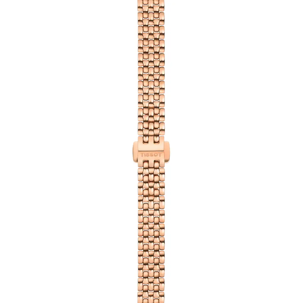 Модель Tissot Lovely T058.009.33.111.00 из коллекции «Lovely 19.5 mm» впечатляет своим утончённым, почти ювелирным стилем благодаря диаметру корпуса всего 19,5 мм. Корпус и интегрированный браслет выполнены из нержавеющей стали 316L с розово-золотым PVD-покрытием, что придает часам роскошный и изысканный вид. Циферблат из натурального перламутра создает нежные переливы, и каждый экземпляр выглядит уникально.