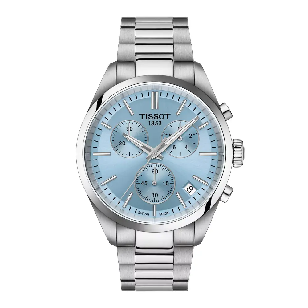 Tissot PR 100 Chronograph T150.417.11.351.00 — это современная спортивно-эlegантная модель для мужчин, ценящих чистый дизайн, универсальность и швейцарскую точность. Корпус 40 мм из стали 316L в сочетании с классическим стальным браслетом создаёт прочный и в то же время изысканный образ, подходящий как для делового стиля, так и для повседневной одежды. Особое внимание привлекает ледяной голубой циферблат, придающий часам свежий и современный характер.