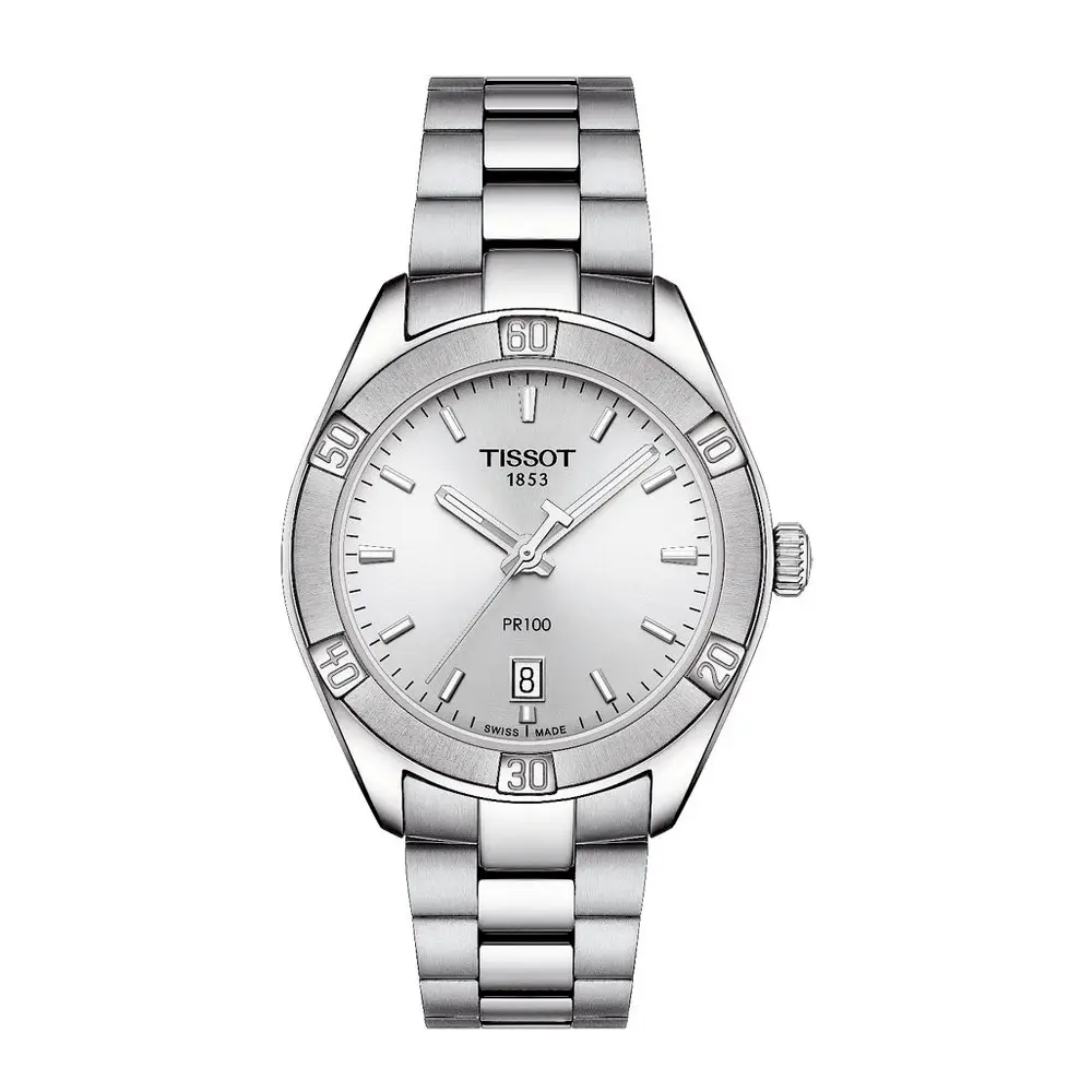 这款 天梭 Tissot PR 100 Sport Chic T101.910.11.031.00 完美融合了 运动优雅与现代时尚。36毫米316L不锈钢表壳 搭配 银色太阳纹表盘 和 抛光磨砂钢表链,展现多功能魅力与精致气质。