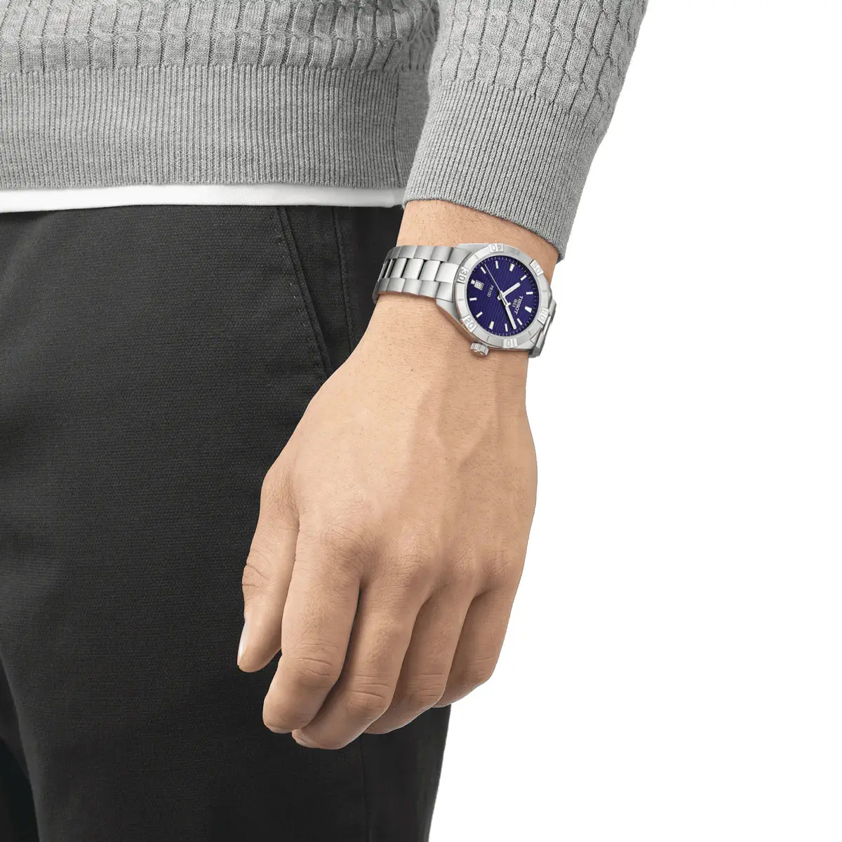 Tissot PR 100 Sport Gent T101.610.11.041.00 сочетает спортивную элегантность, современный дизайн и швейцарскую точность. Корпус из нержавеющей стали диаметром 42 мм дополняет синий циферблат с солнечным узором, полированные метки и стрелки с люминесцентным покрытием, обеспечивающие отличную читаемость.