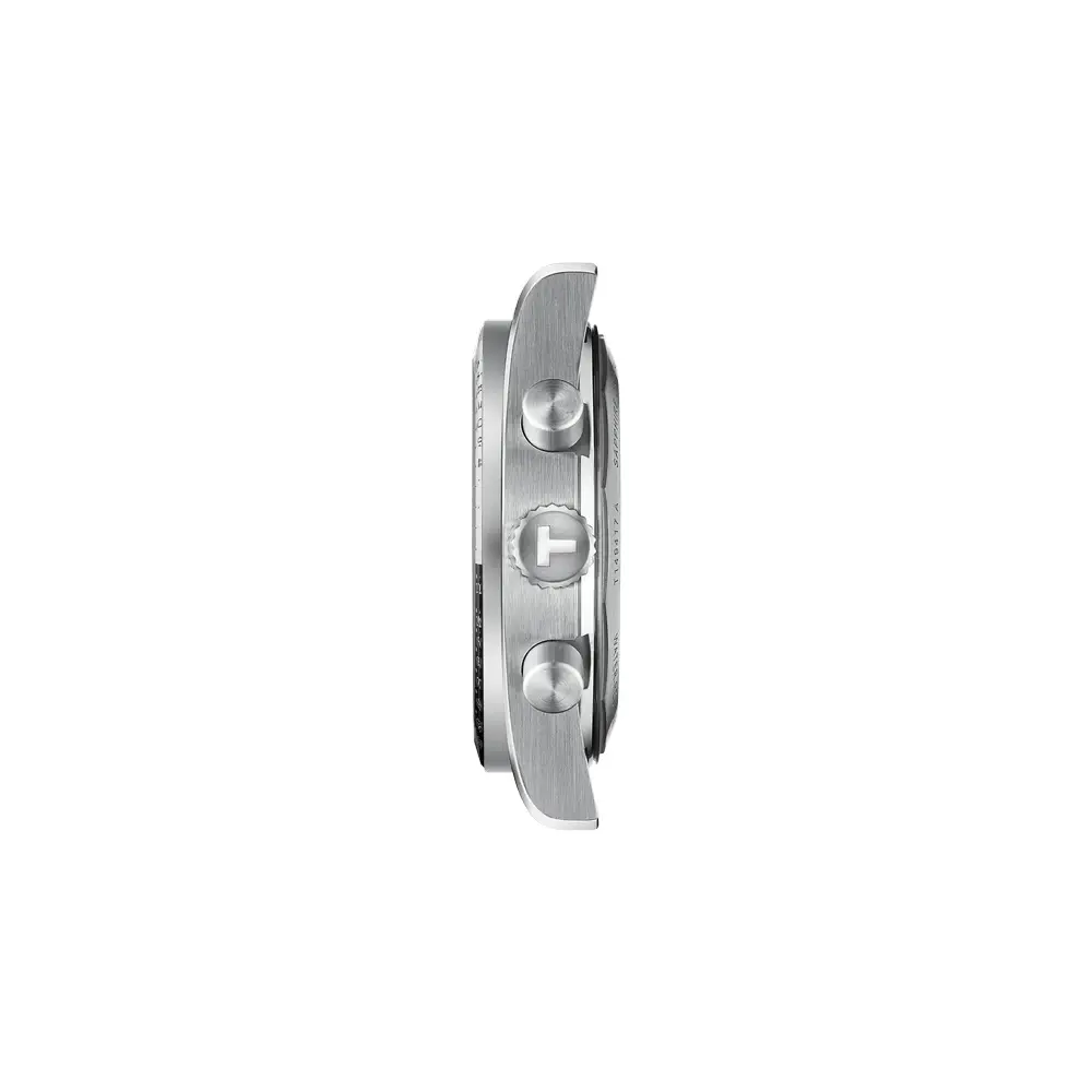 Tissot PR516 Chronograph T149.417.11.051.00 — это динамичные мужские спортивные часы-хронограф, сочетающие вдохновлённый автоспортом дизайн и практичную функциональность. Чёрный циферблат с тремя субциферблатами, люминесцентными стрелками и чёткими метками обеспечивает хорошую читаемость в повседневных и активных условиях.