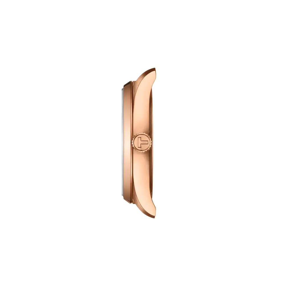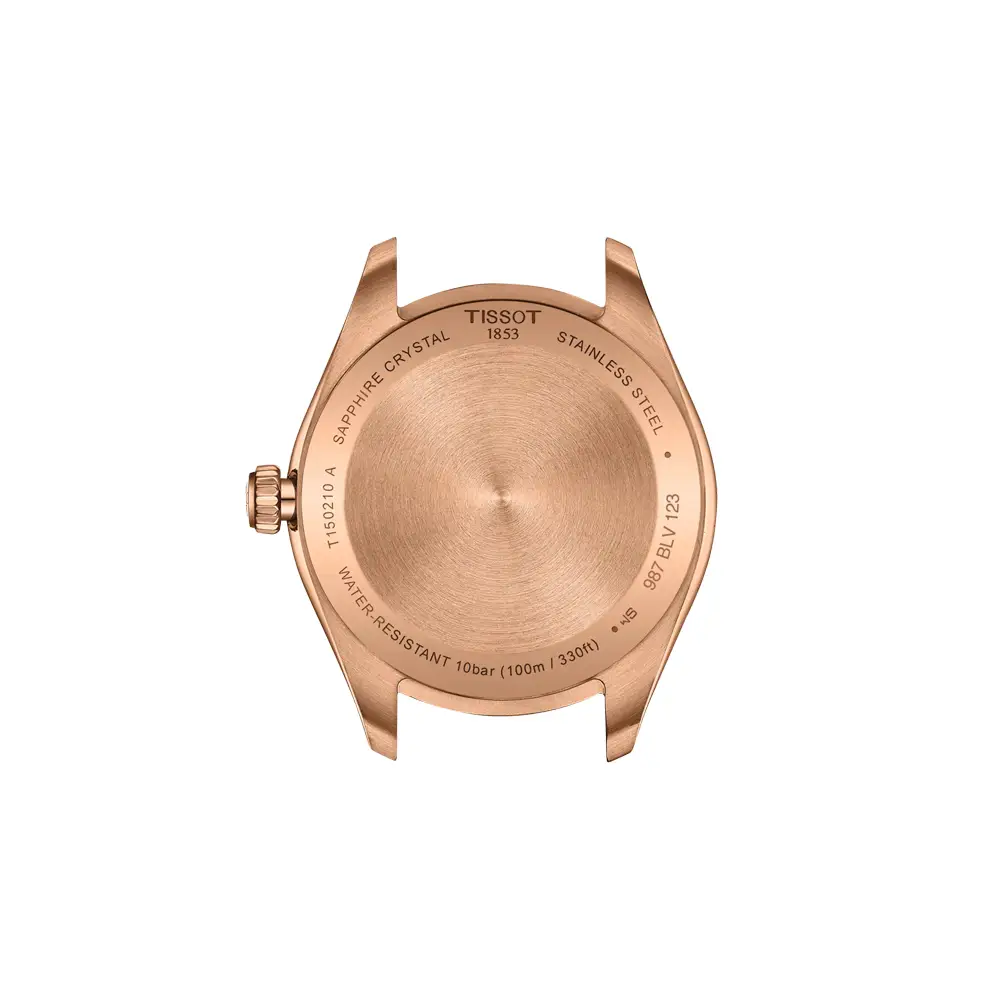 Tissot PR 100 Lady выполнена в 34-мм корпусе из нержавеющей стали с PVD-покрытием розового золота, предлагая современную и элегантную интерпретацию классических женских часов. Сапфировое стекло, сталь 316L и водозащита 100 м (10 бар) обеспечивают долговечность и подходят как для повседневного ношения, так и для более активного образа жизни.