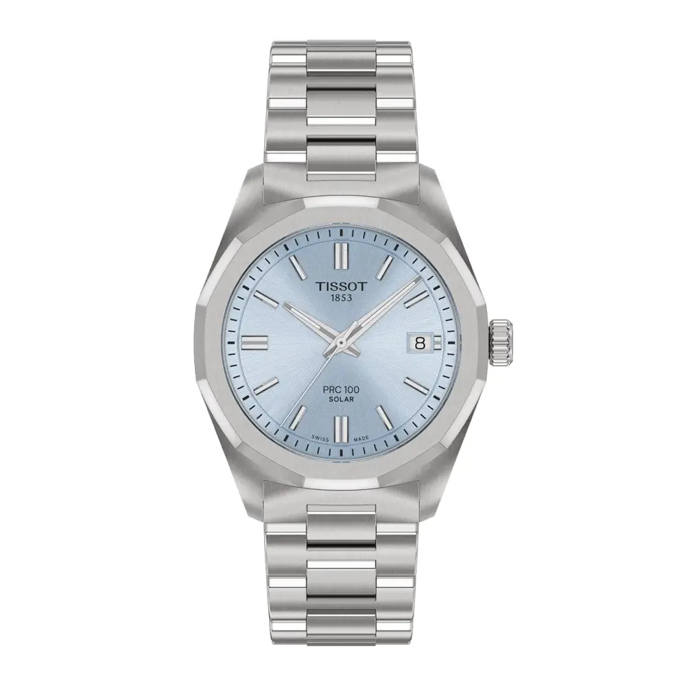 Tissot PRC 100 Solar в компактном размере 34 мм сочетает спортивную элегантность и современную солнечную технологию. Корпус из стали 316L, сапфировое стекло и водозащита 100 м (10 бар) делают модель прочной и практичной — подходящей как для повседневного ношения, так и для активного образа жизни. Стальной браслет с застёжкой-«бабочкой» и системой быстрого снятия обеспечивает максимальный комфорт и универсальность.
