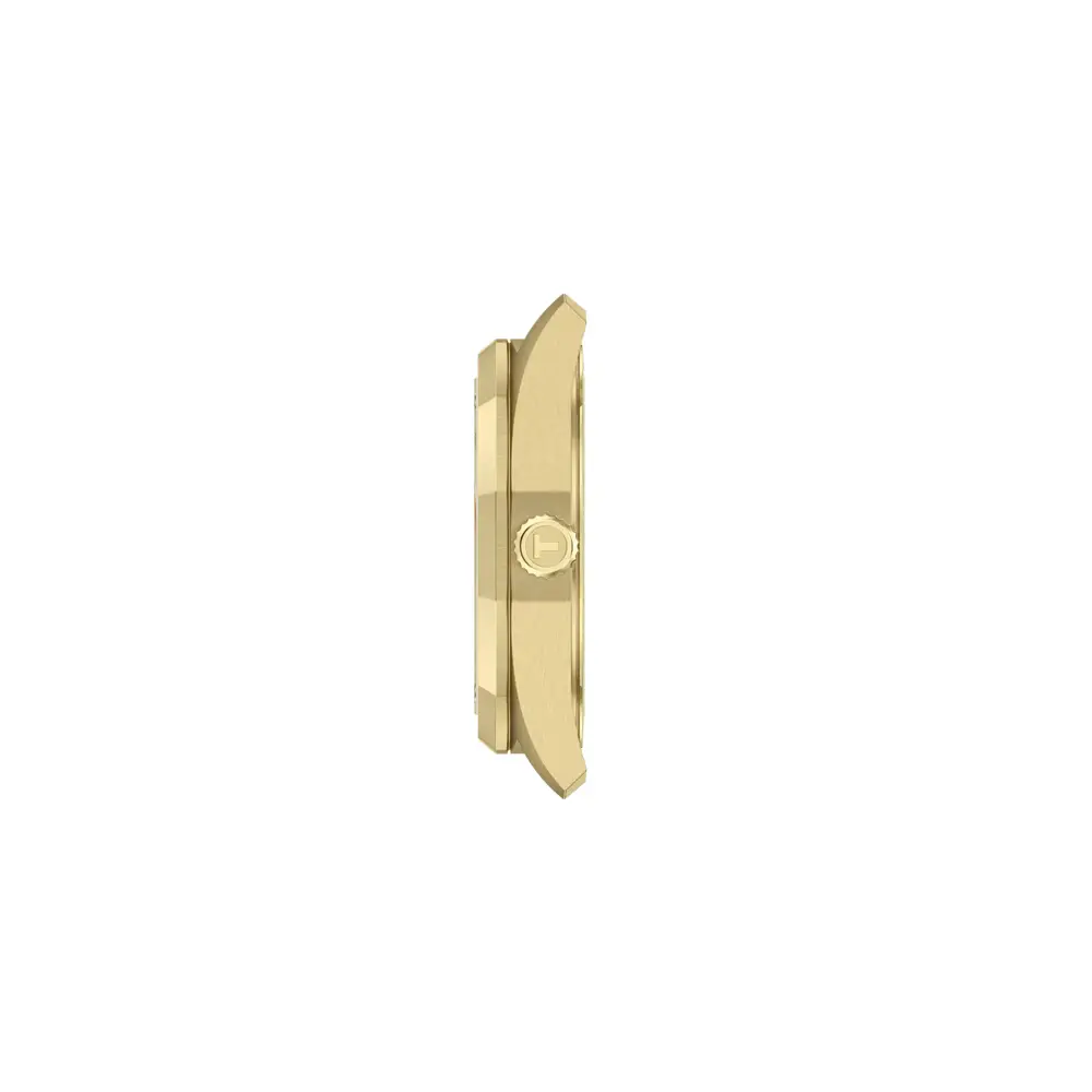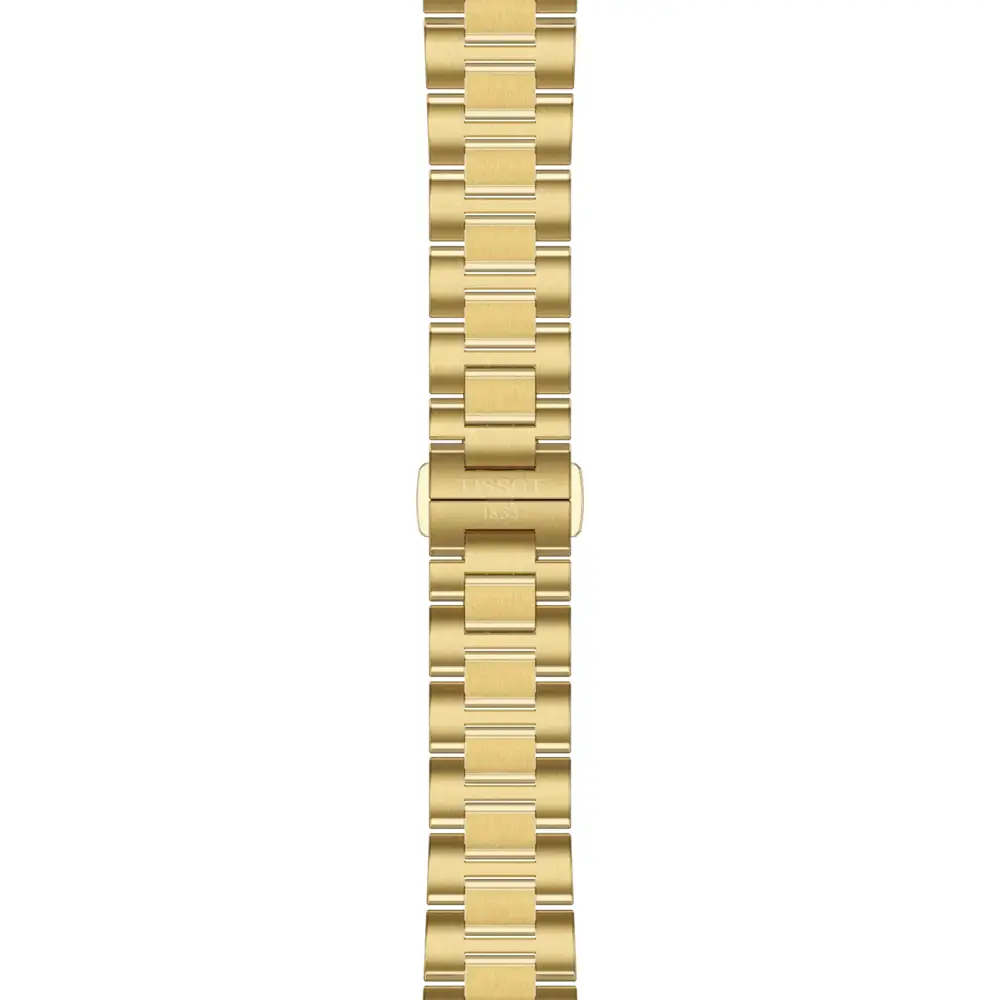 Корпус из нержавеющей стали диаметром 34 мм с PVD-покрытием золотого оттенка отличается гармоничными пропорциями и комфортной посадкой на запястье. Сапфировое стекло, устойчивое к царапинам, надёжно защищает циферблат при повседневном использовании. Образ дополняет стальной браслет золотистого цвета, подчёркивающий роскошный характер модели.