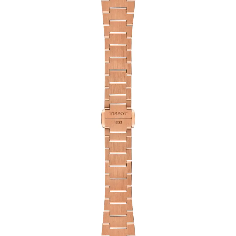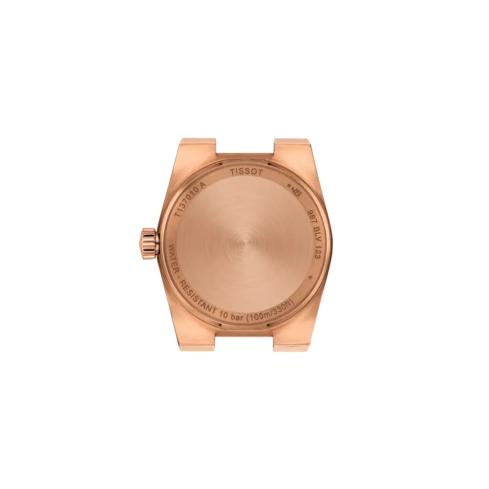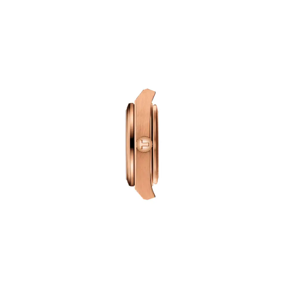 Модель Tissot PRX 25mm T137.010.33.506.00 переносит легендарный дизайн 1970-х в современную женственную форму. Корпус из нержавеющей стали 316L диаметром 25 мм с розово-золотым PVD-покрытием дополнен коричневым циферблатом с солнечным узором, излучающим тепло и элегантность.