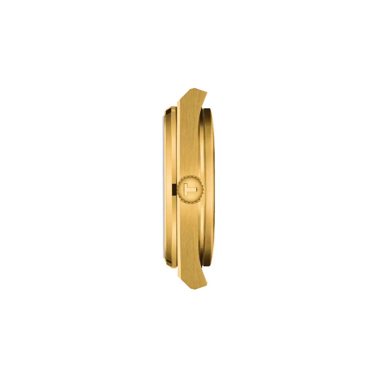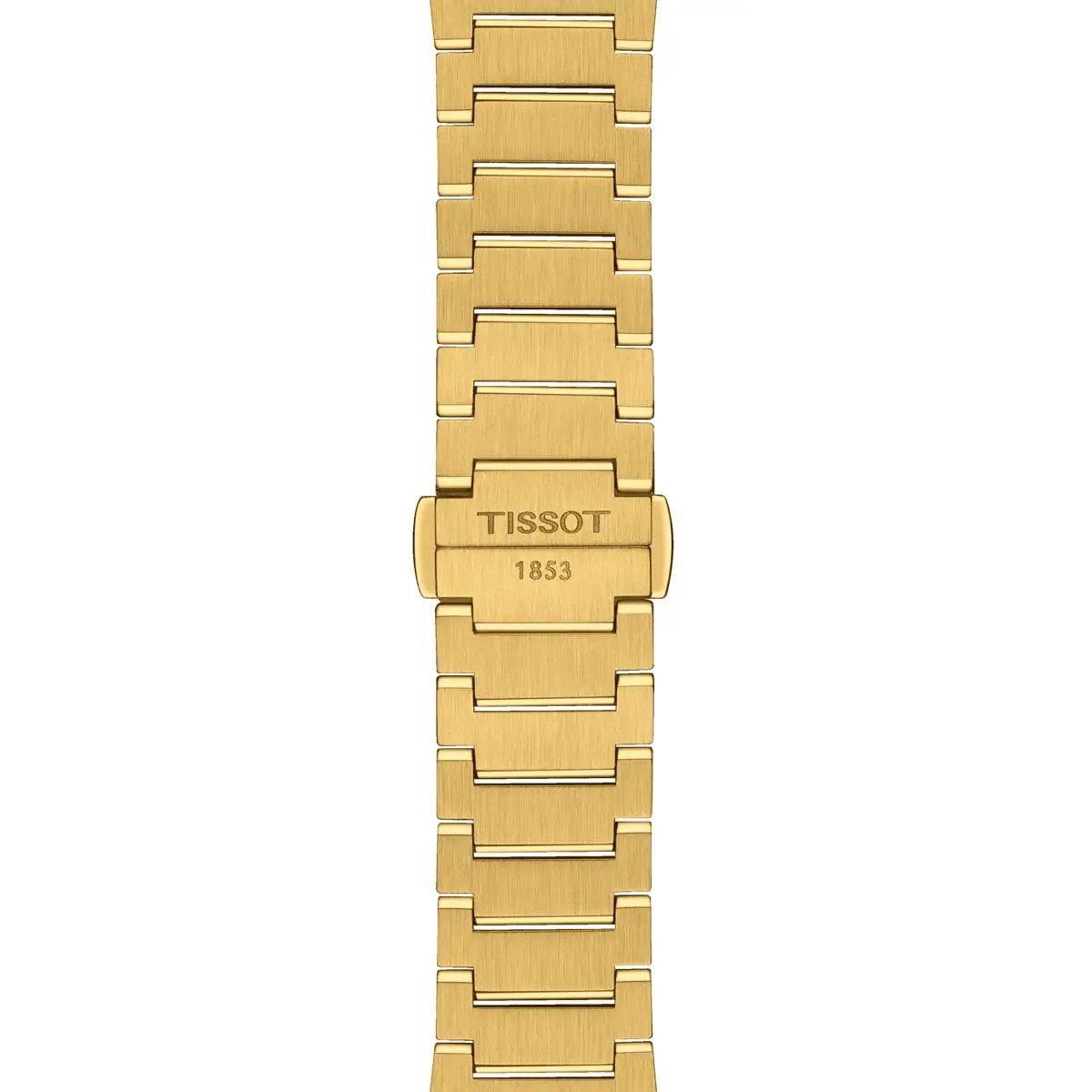 Tissot PRX 35mm T137.210.33.021.00 — это элегантная женская модель, сочетающая роскошный внешний вид и швейцарскую точность. Круглый корпус из нержавеющей стали с жёлтым PVD-покрытием диаметром 35 мм защищён прочным сапфировым стеклом, под которым расположен сияющий золотой циферблат с минималистичным дизайном. Практичная дата на отметке 3 часа делает часы удобными для ежедневного ношения.