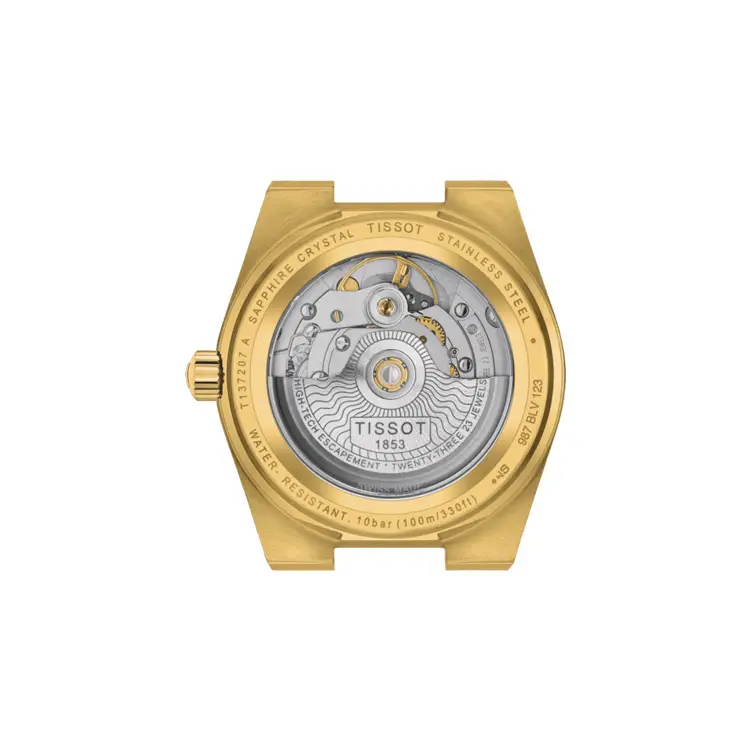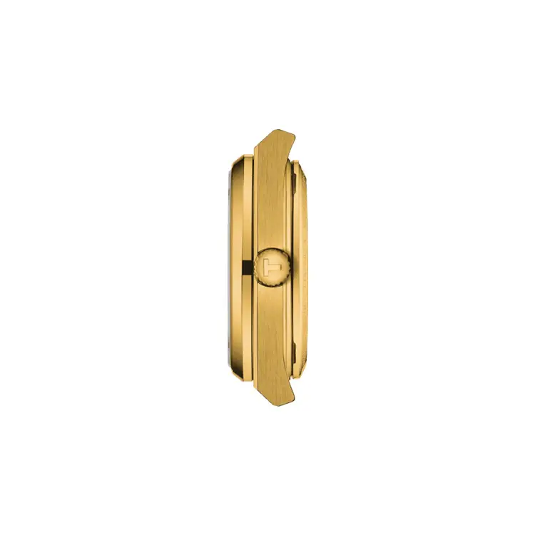 Tissot PRX Powermatic 80 35mm T137.207.33.021.00 сочетает современную элегантность с точностью швейцарского часового мастерства. Круглый корпус диаметром 35 мм из нержавеющей стали с жёлтым золочением защищён прочным сапфировым стеклом, под которым находится золотой циферблат с утончённой текстурой. Практичная дата на отметке 3 часа подчёркивает функциональность модели.