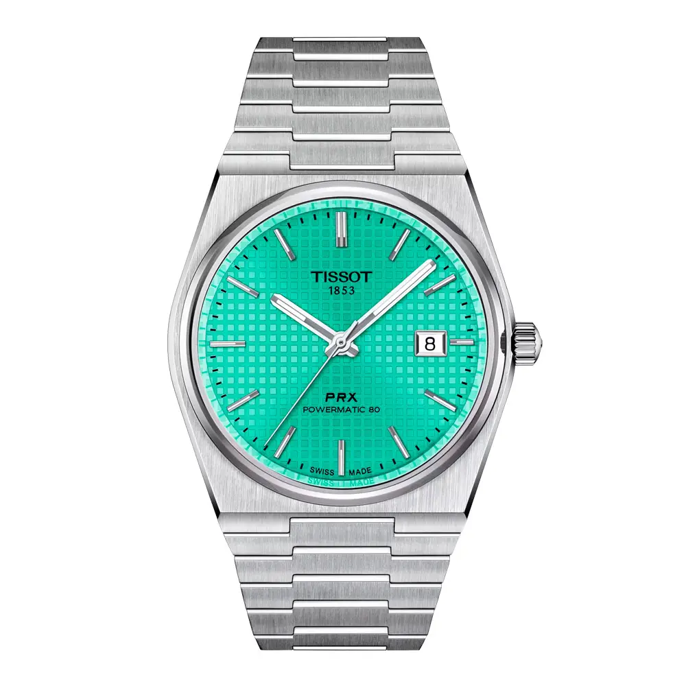 Tissot PRX Powermatic 80 40 мм в бирюзовом исполнении — это современная интерпретация культового дизайна 70-х годов, объединяющая в себе вечную эстетику и новейшие швейцарские технологии. Круглый стальной корпус диаметром 40 мм с элегантным стальным безелем защищён прочным сапфировым стеклом, устойчивым к царапинам и обеспечивающим превосходную читаемость.