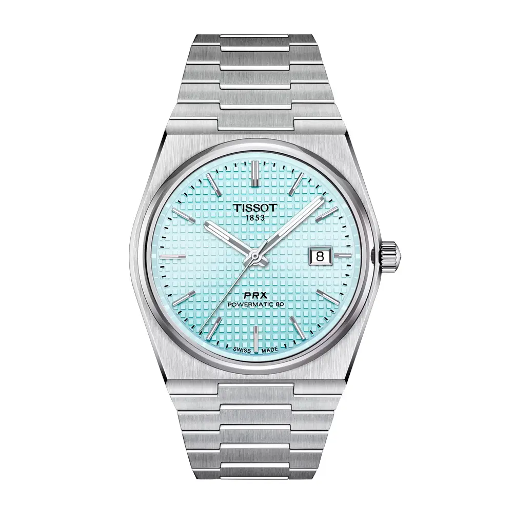 Tissot PRX Powermatic 80 T137.407.11.351.00 возвращает культовый дизайн 1970-х годов, переосмысленный с использованием современной швейцарской точности. Корпус диаметром 40 мм из нержавеющей стали 316L плавно переходит в интегрированный стальной браслет, создавая элегантный и спортивный облик. Особый шарм придает циферблат ледяного голубого оттенка с солнечным узором, подчеркивающий современный характер модели.