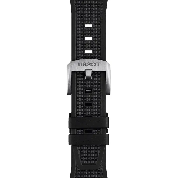 Черный каучуковый ремешок шириной 21 мм оснащен классической пряжкой, обеспечивающей удобство и надежность.