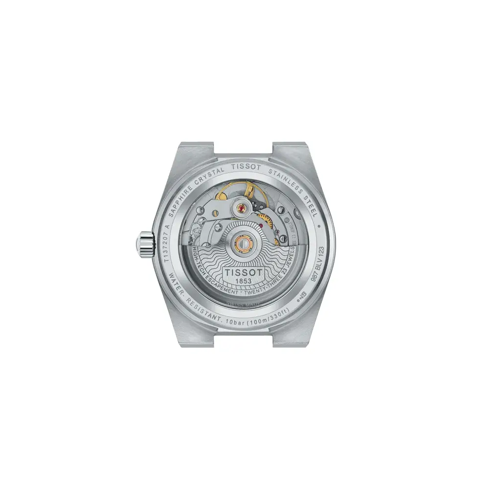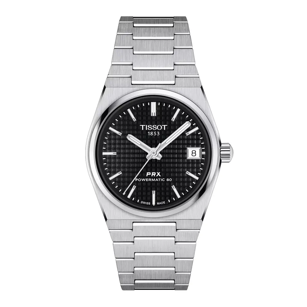 Модель Tissot PRX Powermatic 80 в размере 35 мм сочетает в себе культовый дизайн 70-х годов и современные технологии швейцарского часового производства. Её элегантный корпус 35 мм из нержавеющей стали и характерный чёрный циферблат с вафельной текстурой создают выразительный, роскошный облик. Циферблат защищён сапфировым стеклом с антибликовым покрытием, обеспечивающим отличную читаемость.