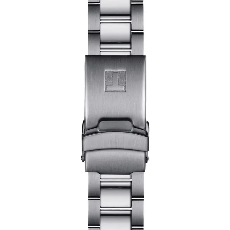 Браслет из нержавеющей стали в серебристом исполнении с раскладывающейся застёжкой обеспечивает комфорт при ношении. Благодаря водозащите 30 ATM (300 м) и завинчивающейся заводной головке часы готовы к экстремальным условиям погружения.
