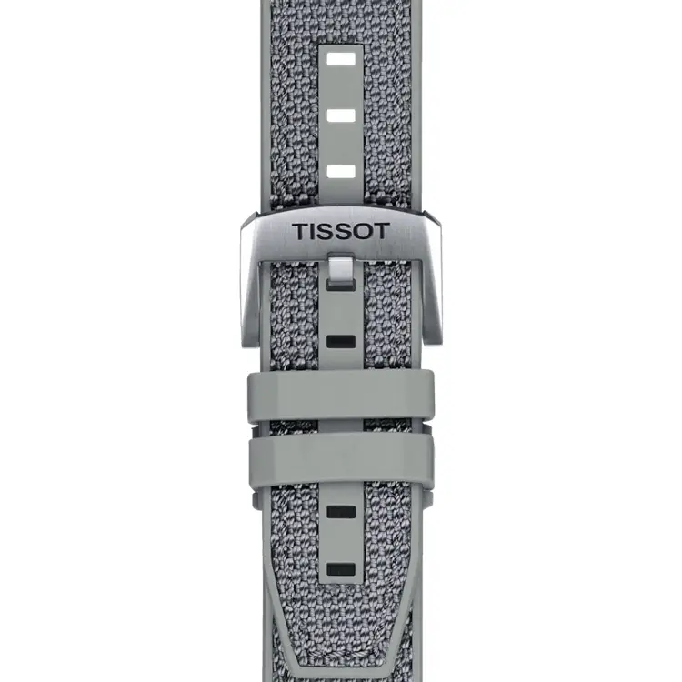 Часы Tissot Seastar 1000 Chronograph поставляются с серым ремешком из ткани и силикона, обеспечивающим комфортное ношение и устойчивость к износу. Другие особенности включают однонаправленный вращающийся безель для дайвинга и завинчивающуюся заводную головку для повышенной водонепроницаемости.