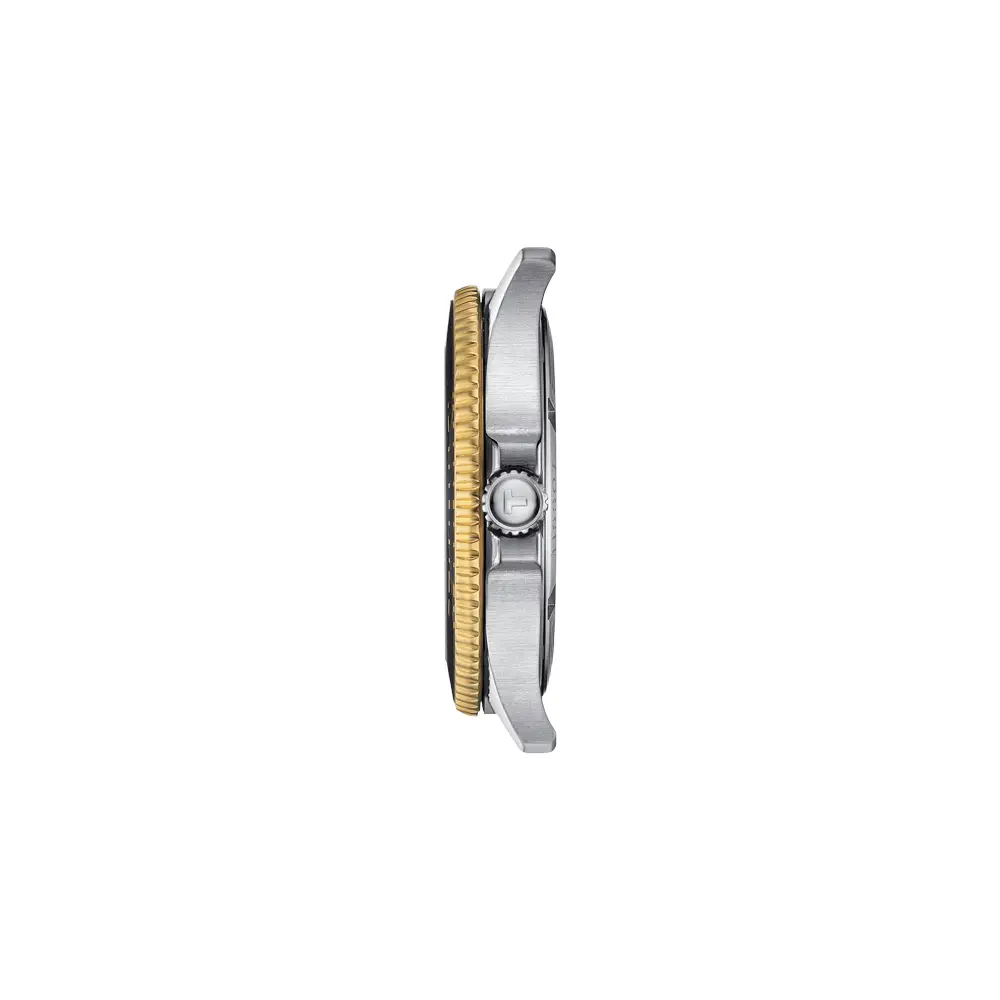 Внутри установлен надёжный швейцарский кварцевый механизм, отличающийся высокой точностью и минимальными требованиями к обслуживанию. Двухцветный стальной браслет оснащён надёжной застёжкой с защитным механизмом, обеспечивающей комфортное ношение. Tissot Seastar 1000 Quartz — идеальный выбор для тех, кто ищет прочные, технически совершенные и стильные швейцарские спортивные часы.