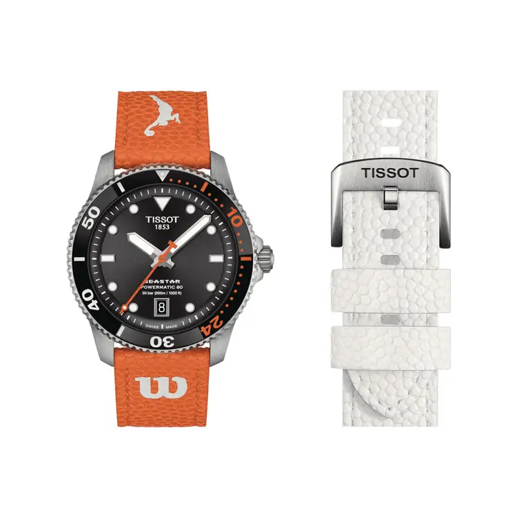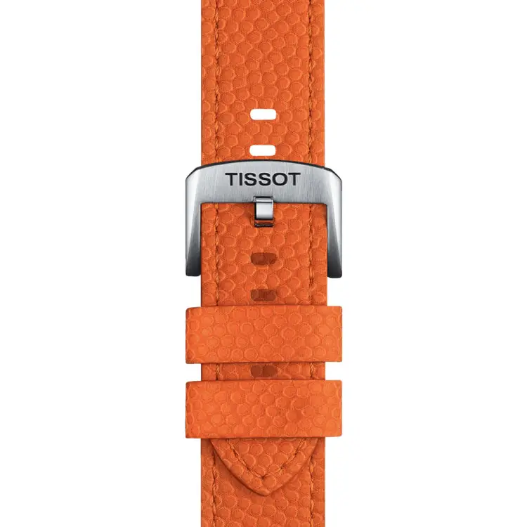 Модель дополнена ярким оранжевым кожаным ремешком с классической пряжкой, текстура которого напоминает баскетбольный мяч, придавая часам уникальный спортивный характер. Благодаря водозащите 30 ATM (300 м) они подходят для дайвинга и сложных водных видов спорта.