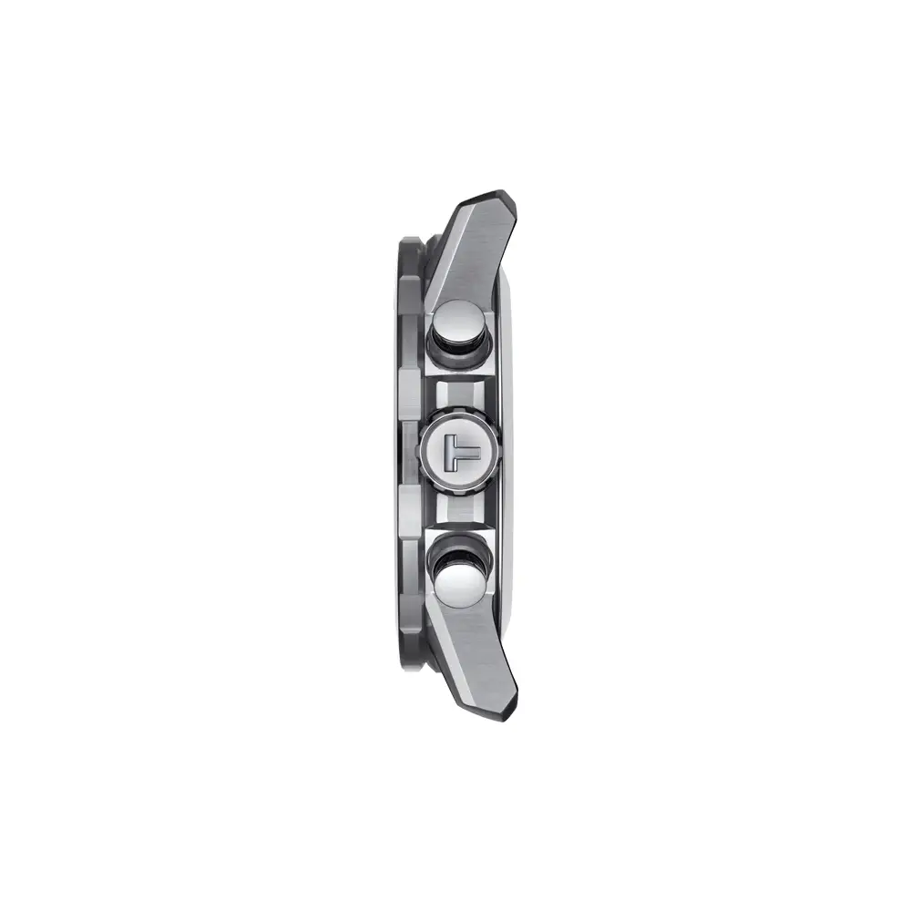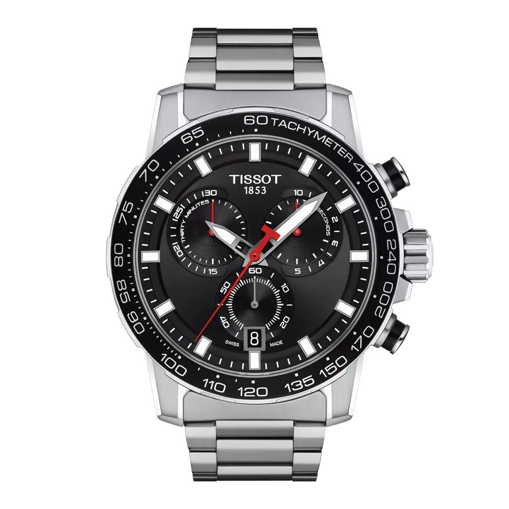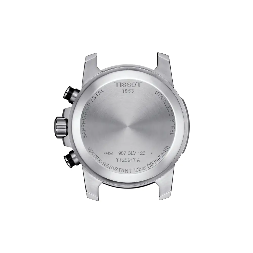 Tissot Supersport Chrono T125.617.11.051.00 сочетает динамичный спортивный стиль с точной швейцарской инженерией. Корпус из нержавеющей стали диаметром 45,5 мм и чёрный алюминиевый безель с тахиметрической шкалой создают мощное и выразительное присутствие на запястье. Чёрный циферблат с солнечным эффектом и стрелками с покрытием Super-LumiNova® обеспечивает превосходную читаемость в любых условиях.
