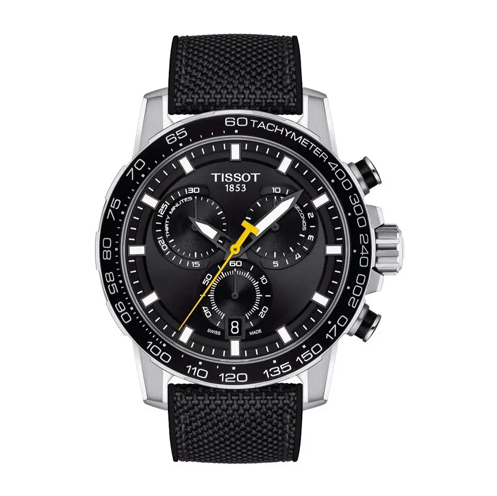 Tissot Supersport Chrono — идеальный выбор для современного мужчины, ценящего спортивный стиль, точность и надёжность. Часы оснащены массивным корпусом из нержавеющей стали диаметром 45,5 мм, чёрным циферблатом с солнечным узором и крупными метками с люминесцентным покрытием Super-LumiNova® для отличной читаемости в любое время суток.