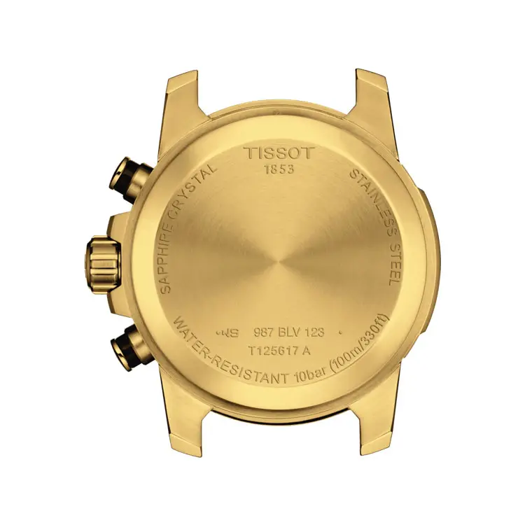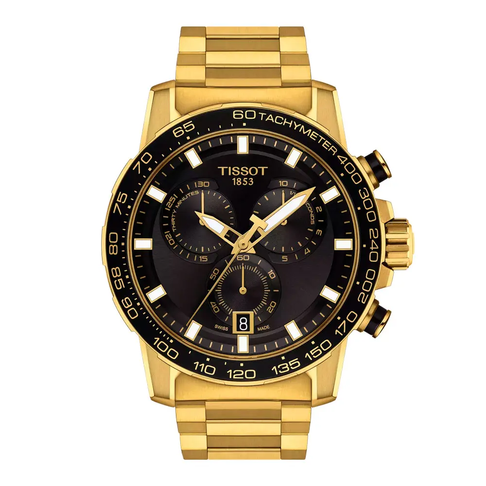 Модель Tissot Supersport Chrono T125.617.33.051.01 воплощает мощь, энергию и швейцарскую точность в современном спортивном дизайне. Корпус из нержавеющей стали 316L диаметром 45,5 мм с покрытием PVD цвета жёлтого золота дополнен чёрным циферблатом с контрастными субциферблатами, тахиметрической шкалой и стрелками с покрытием Super-LumiNova®.