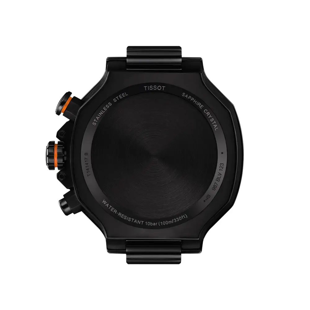 Модель Tissot T-Race Quartz Chronograph T141.417.37.051.02 воплощает страсть к мотоспорту, мощь и швейцарскую точность. Корпус из нержавеющей стали 316L диаметром 45 мм с чёрным PVD-покрытием дополняет чёрный циферблат с оранжевыми акцентами, вдохновлённый дизайном гоночных мотоциклов.