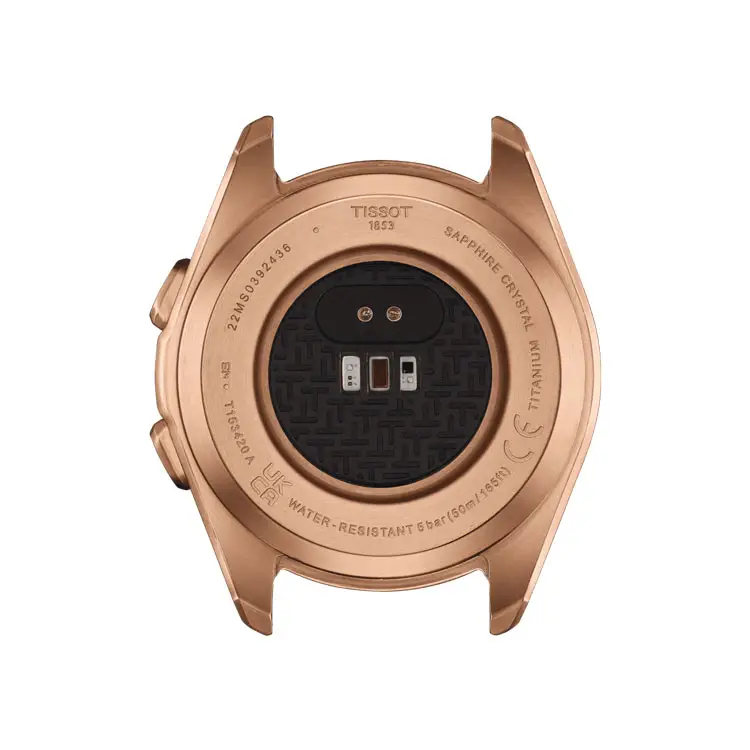 Tissot T-Touch Connect Sport в роскошном исполнении сочетает спортивный стиль, современные технологии и швейцарскую точность. Круглый титановый корпус диаметром 43,75 мм с элегантным покрытием Rose PVD и керамическим безелем выглядит современно и отличается высокой прочностью. Циферблат защищён сапфировым стеклом, устойчивым к царапинам.