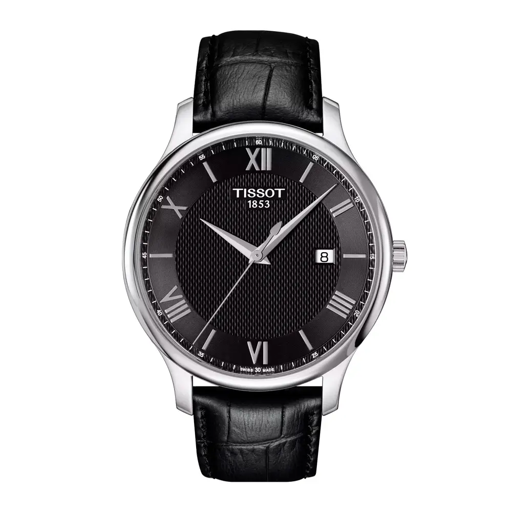 Чёрный кожаный ремешок с классической пряжкой придаёт часам элегантность и комфорт. С водонепроницаемостью до 30 метров (3 бар) Tissot Tradition Quartz T063.610.16.058.00 станет идеальным выбором для мужчин, ценящих стиль, надёжность и классику, воплощающих швейцарское качество и элегантный дизайн.