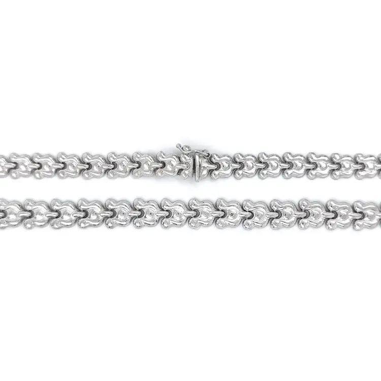 Чистота формы делает ожерелье выразительным как самостоятельный акцент или как часть многослойного ансамбля. Полированное белое золото излучает мягкую роскошь, привлекая взгляд отсутствием лишних деталей.