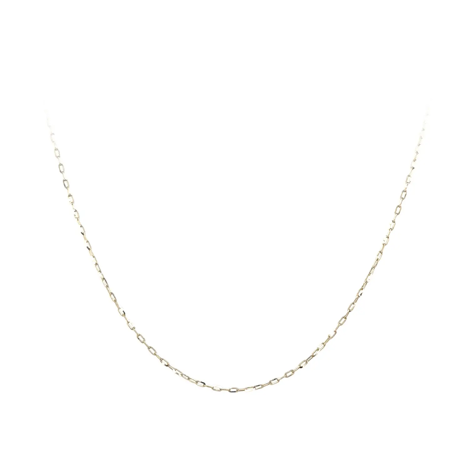 Цепочка изготовлена из жёлтого золота и оснащена классическим пружинным замком, обеспечивающим надёжную фиксацию. Длина цепочки составляет 50 см, ширина — 1,00 мм, что делает её изящной и одновременно достаточно прочной, подходящей для женщин и мужчин.
