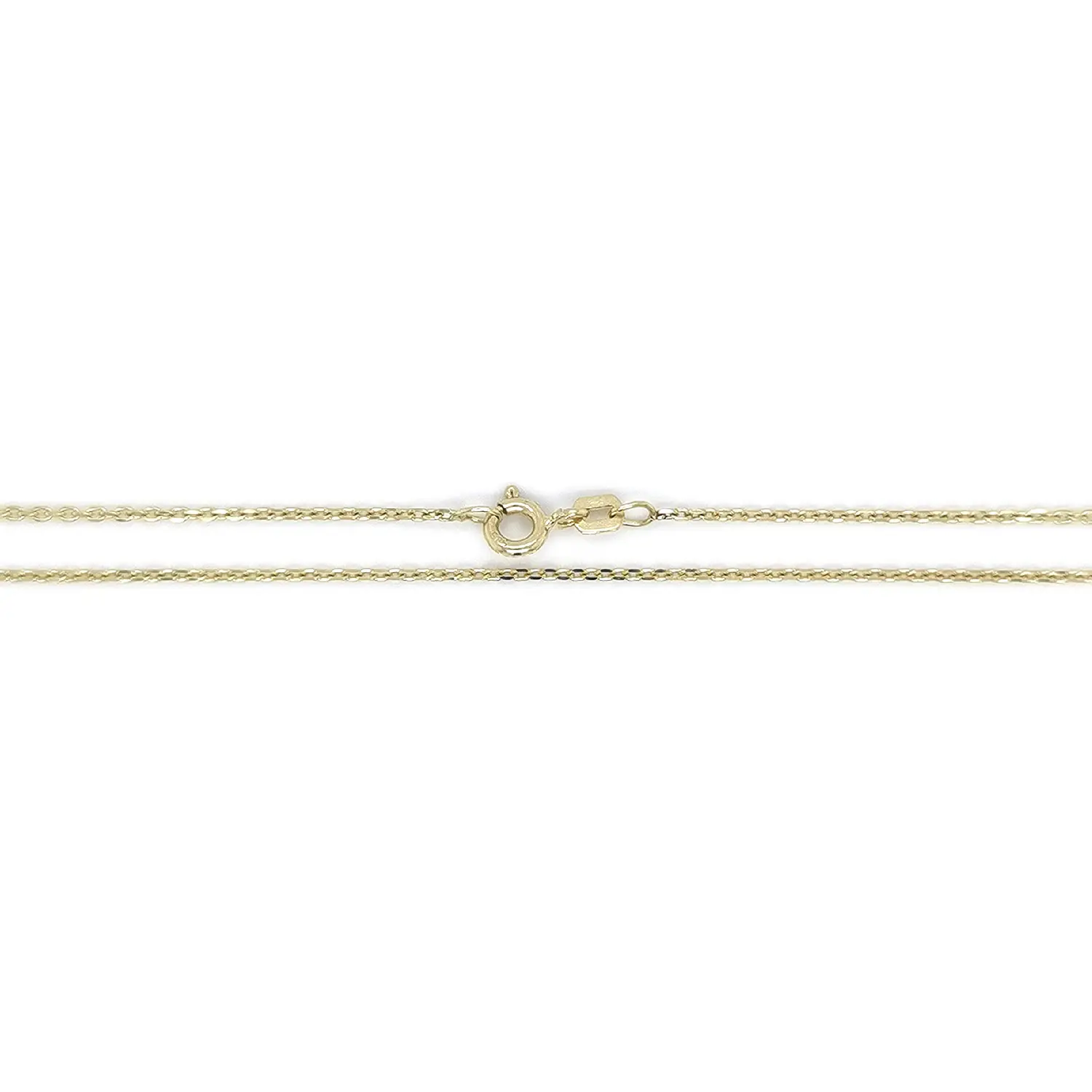 Цепочка имеет длину 40 см и ширину 1,20 мм, благодаря чему естественно располагается вдоль линии шеи. Она идеально подходит как для самостоятельного ношения, так и в качестве изящной основы для небольшого кулона. Точная обработка обеспечивает комфорт и долговечность изделия.