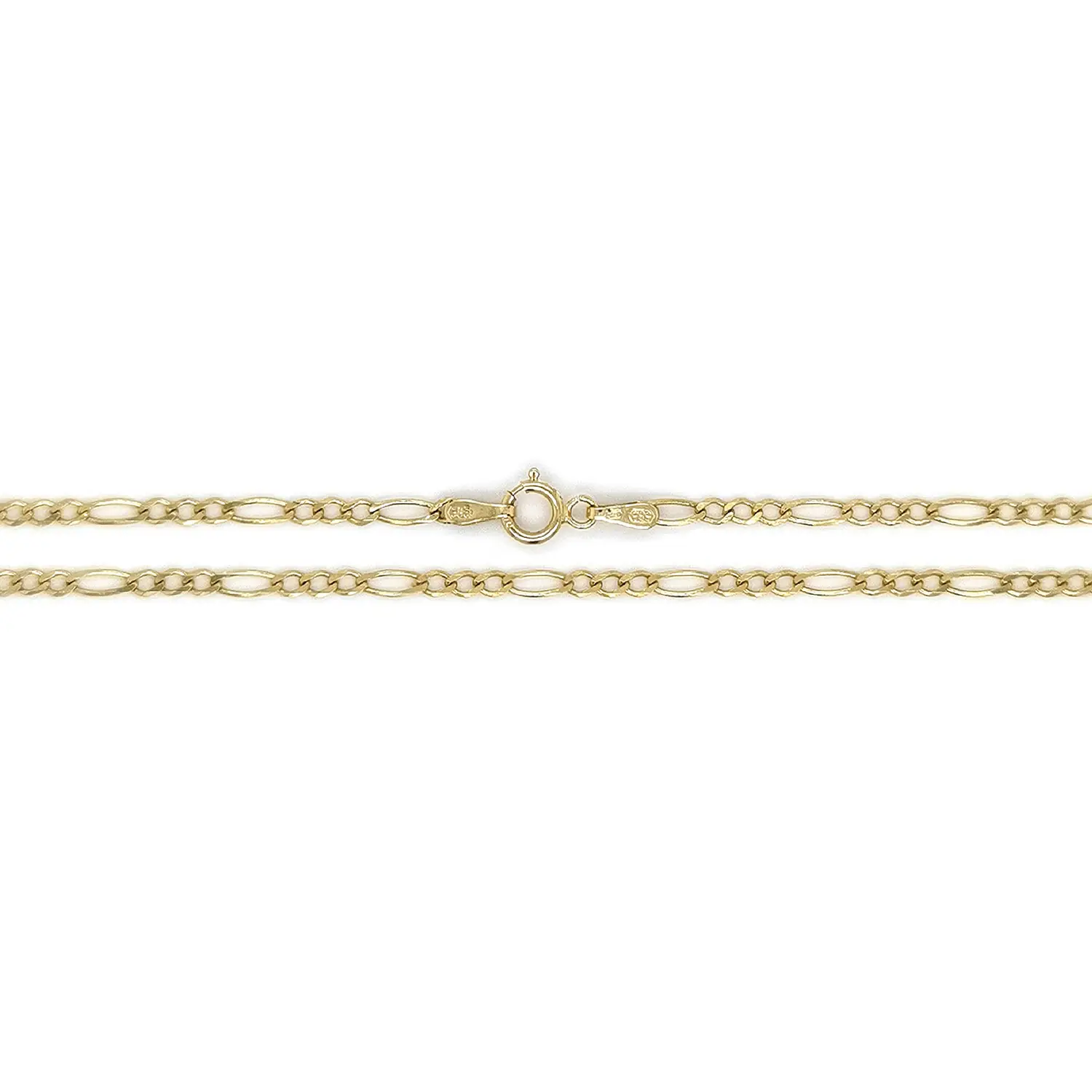 Золотая цепочка Фигаро длиной 50 см и шириной 2,20 мм — это элегантное и вне времени украшение, отличающееся характерным чередованием одного удлинённого овального звена и трёх коротких. Такая классическая структура выглядит лёгкой, гармоничной и стильной, что делает цепочку идеальной как для повседневного ношения, так и для особых случаев. Тщательно обработанные звенья красиво отражают свет при каждом движении, создавая утончённый, но заметный блеск.