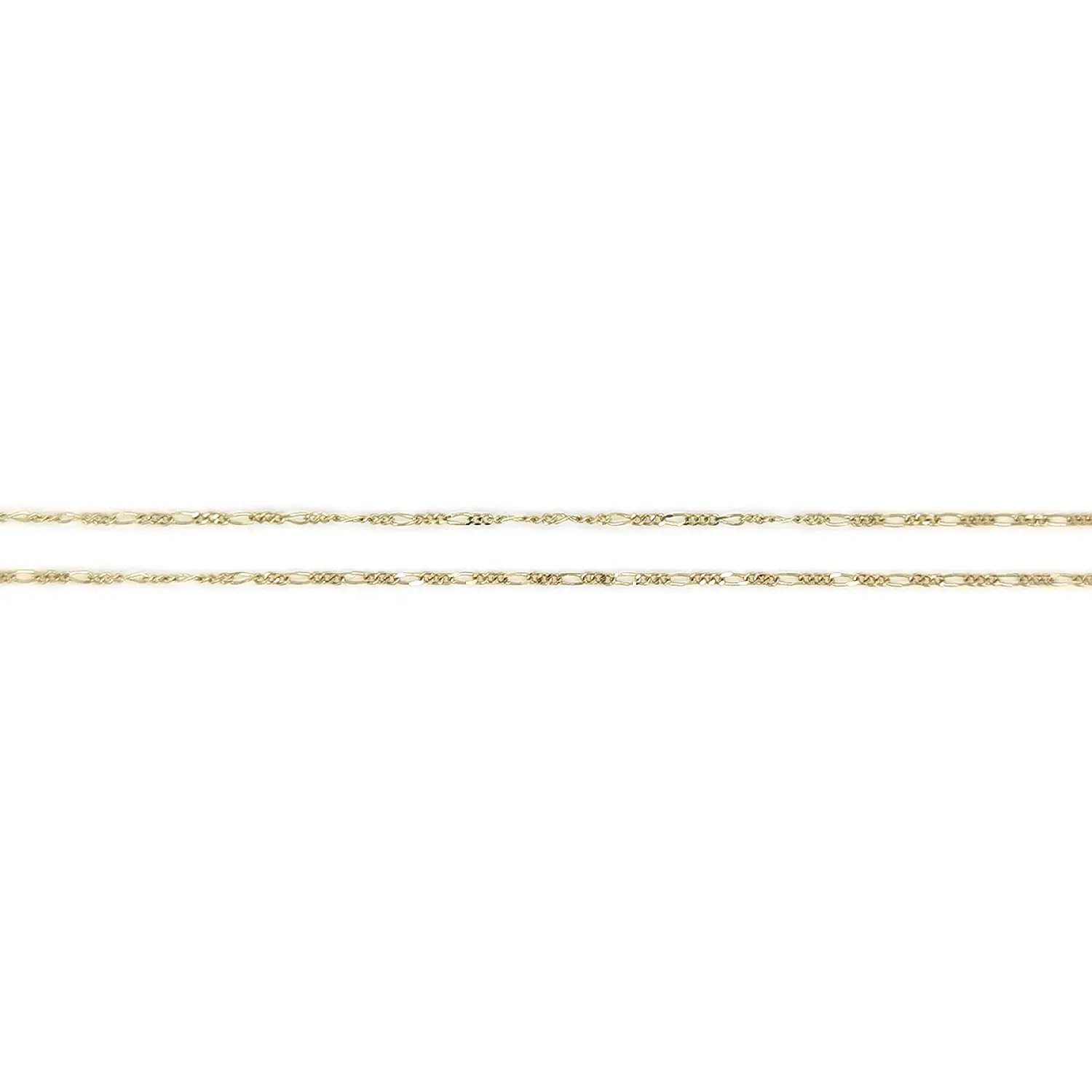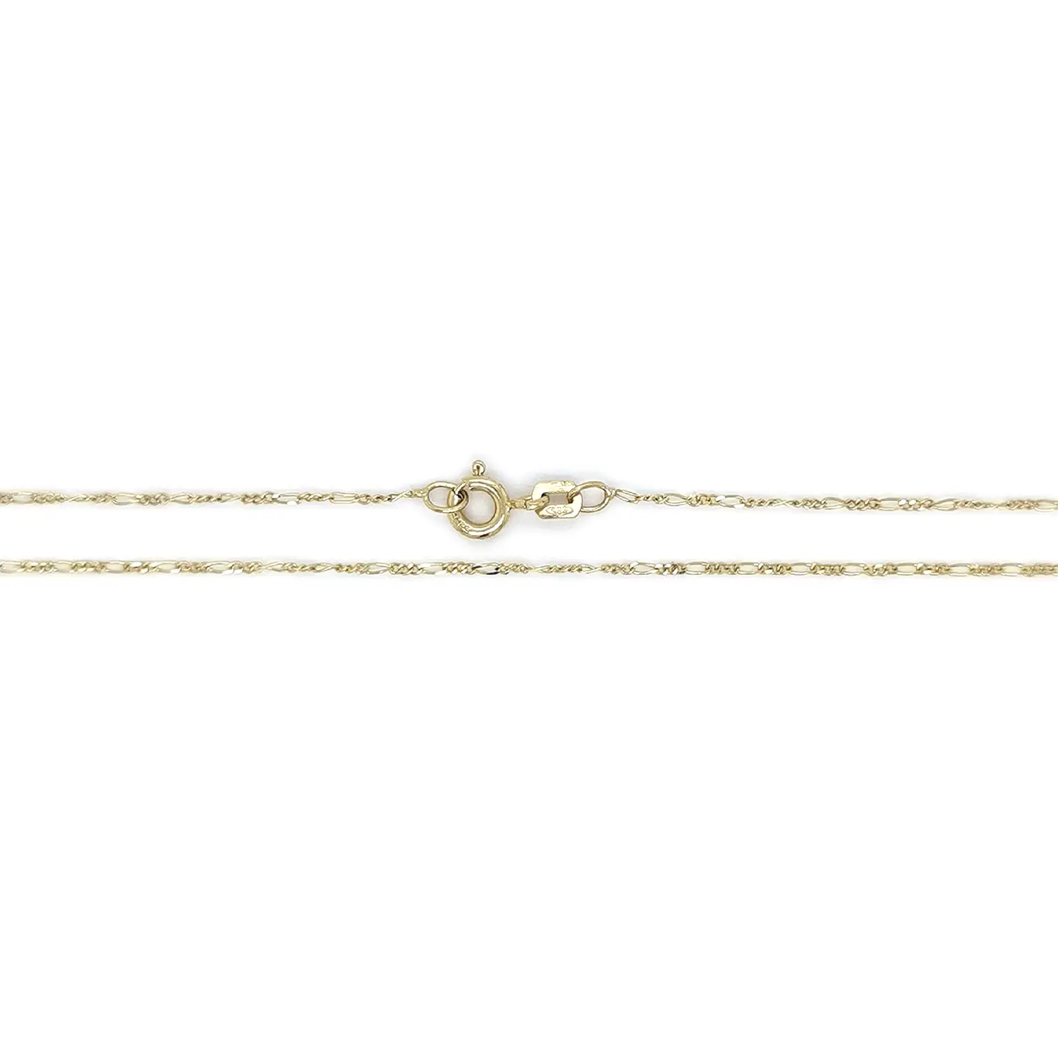 Эта золотая цепочка плетения Figaro — классическое украшение, отличающееся элегантным чередованием коротких и длинных звеньев. Дизайн выглядит утончённо и в то же время выразительно, благодаря чему цепочку можно носить как самостоятельно, так и с подвеской. Точная обработка подчёркивает блеск золота и обеспечивает привлекательный внешний вид при повседневной носке.