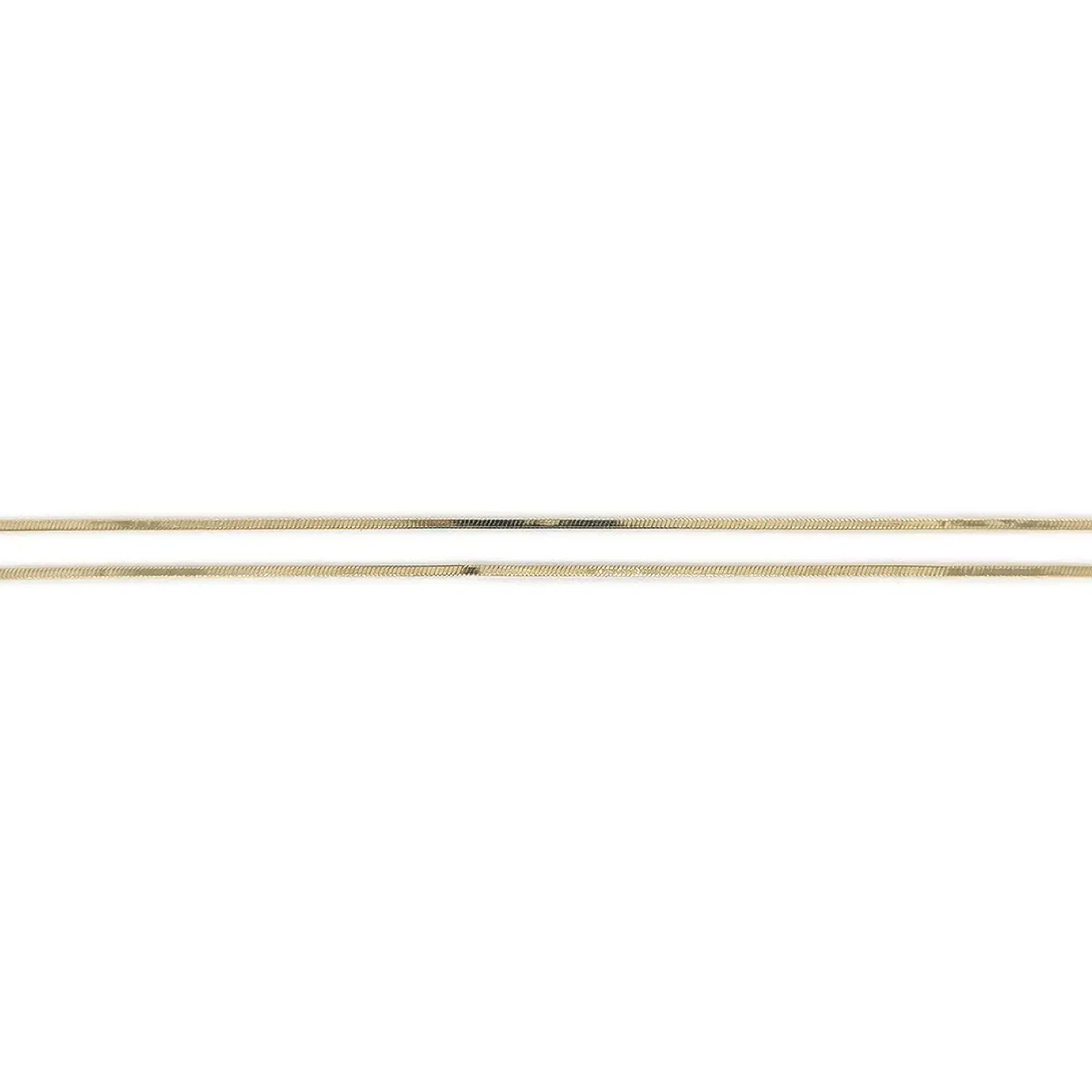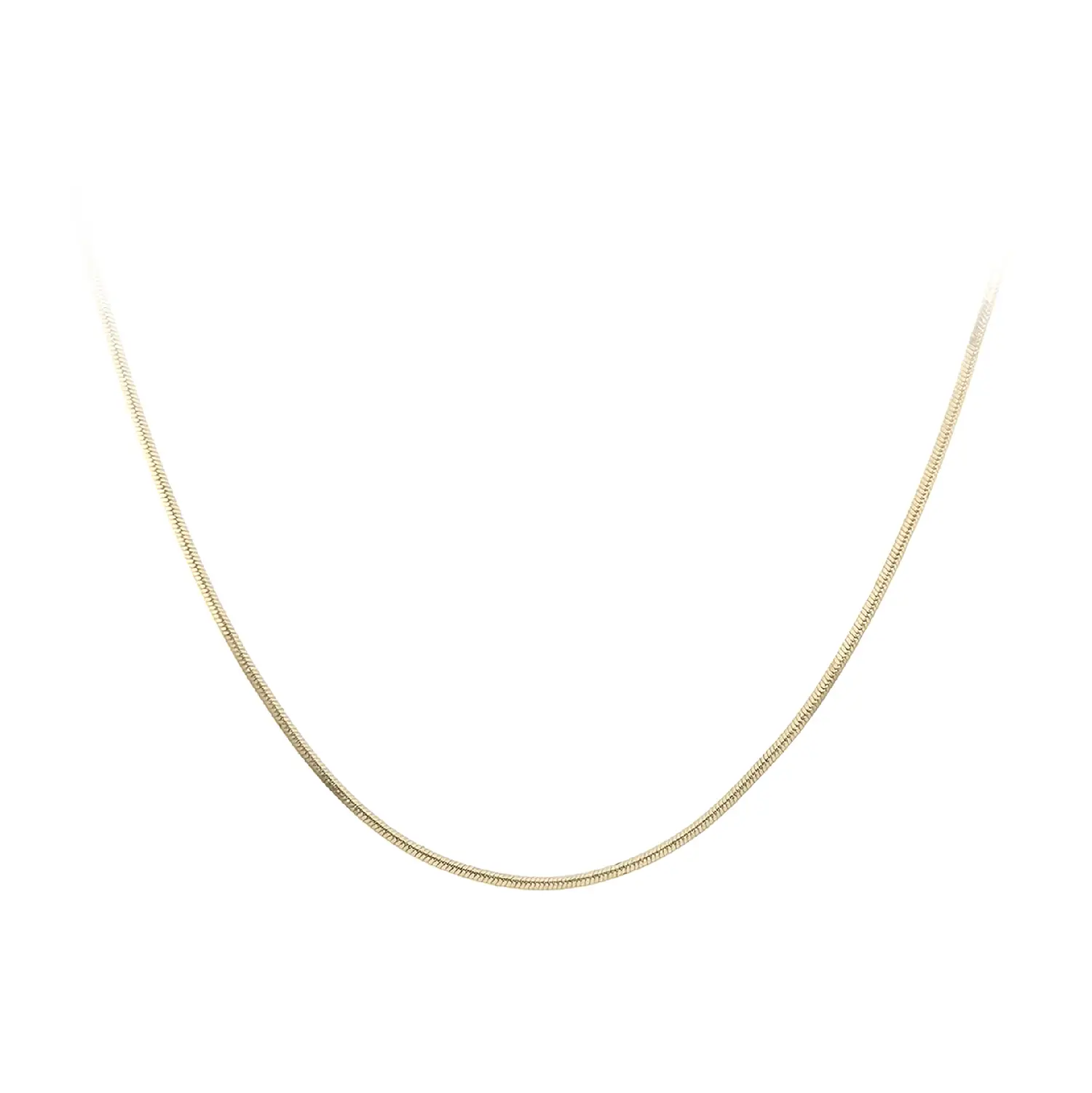 Эта золотая цепочка плетения «змейка» отличается гладкой, плотной поверхностью и элегантным блеском, создающим сдержанный и вневременной образ. Благодаря тонкому профилю она подходит как для самостоятельного ношения, так и для подвески.
