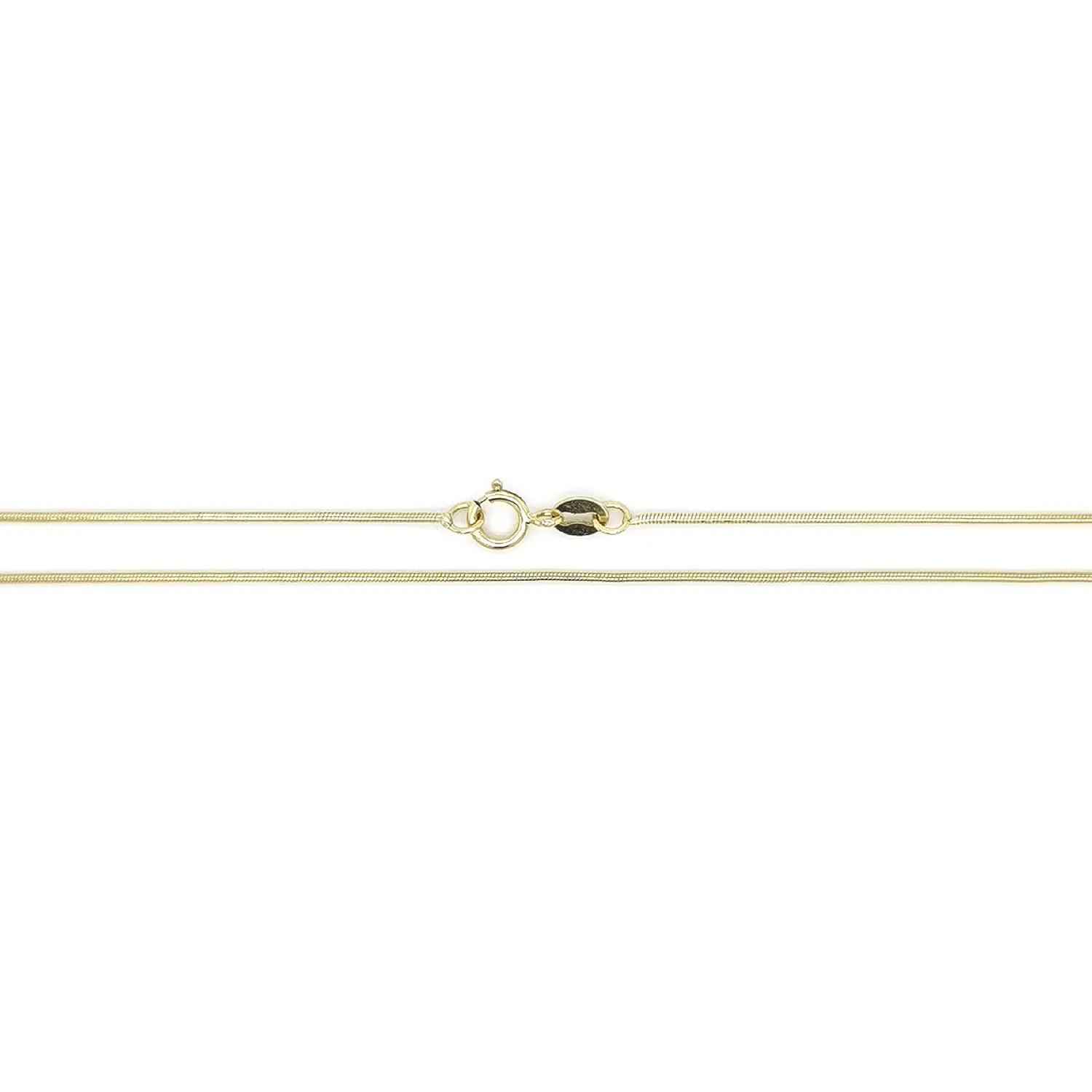 Изящная цепочка из жёлтого золота с гладкой, цельной поверхностью и благородным блеском. Тщательно выполненное плетение «змейка» выглядит современно и элегантно, комфортно прилегая к шее. Благодаря ширине 0,80 мм украшение смотрится утончённо и аккуратно.
