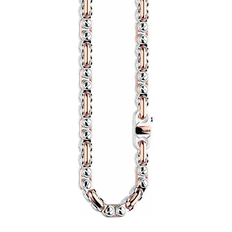 Цепочка Zancan Eternity EC883BR60 — воплощение вечной элегантности и итальянского мастерства. Изготовлена из комбинированного золота 18 к (750/1000) с зеркальной полировкой, она поражает точностью звеньев, символизирующих силу, гармонию и индивидуальность.