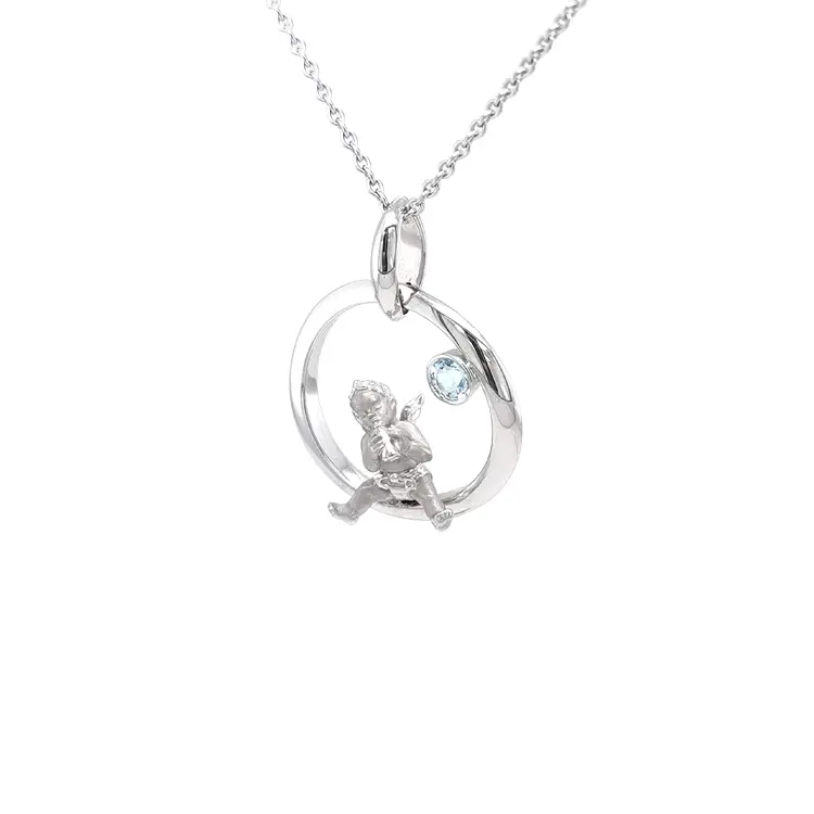 Подвеска Carrera y Carrera My Angel с топазом — это воплощение утончённости, гармонии и высочайшего ювелирного мастерства. Изготовлена из белого золота 18 карат (750/1000) с глянцево-матовой отделкой, она сочетаeт в себе роскошь и духовную символику. Высота изделия — 7,60 мм, длина цепочки — 45 см, размеры украшения — 25 мм.