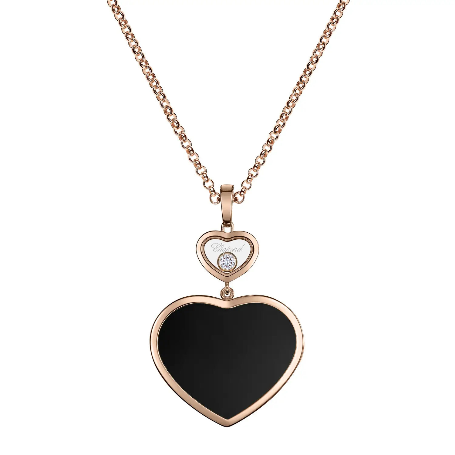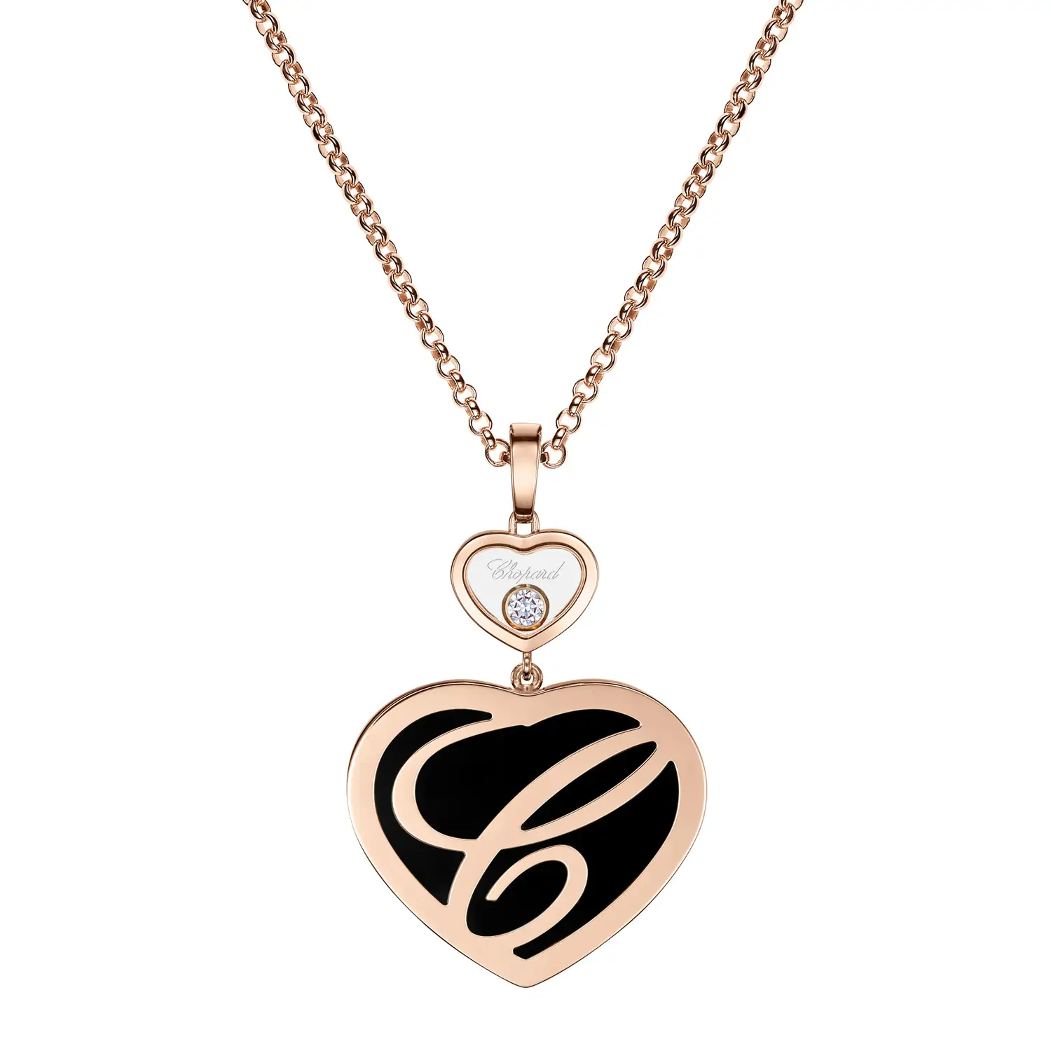 Chopard Happy Hearts 79A075-5201 — это украшение, в котором сочетаются элегантность, изящество и символика любви. Этот роскошный подвес выполнен из 18-каратного розового золота (750/1000) с глянцевой поверхностью, подчёркивающей его женственный и романтичный характер. Центральным элементом является знаковый мотив сердца, который Chopard виртуозно воплощает уже много лет.