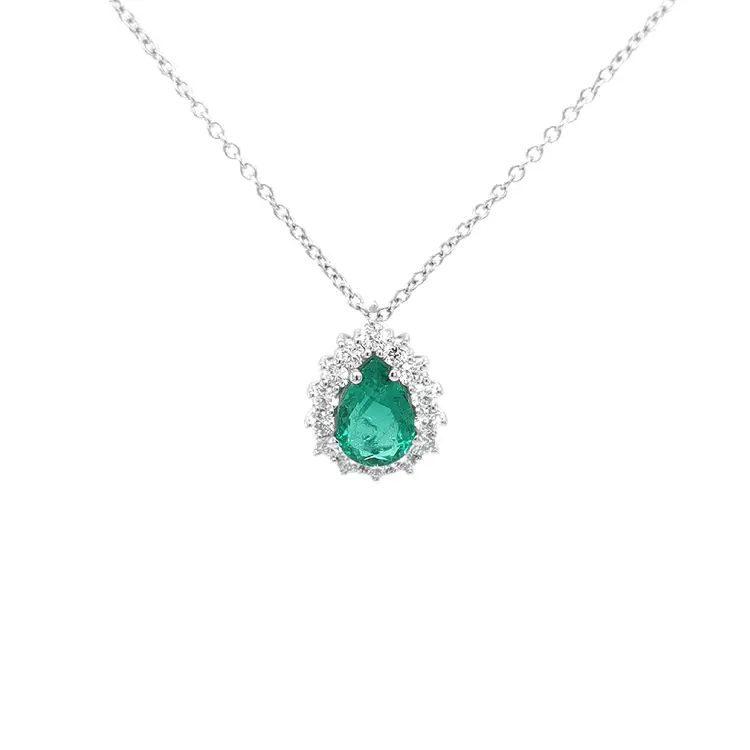 Украшение дополнено 14 бриллиантами круглой огранки (Round) общим весом 0,54 карата, размером 1,90 мм, цвета G и чистоты SI. Их блеск подчёркивает глубину зелени изумруда, создавая утончённый контраст. Подвеска Crieri — это символ вечной элегантности, созданный для женщин с безупречным чувством стиля.