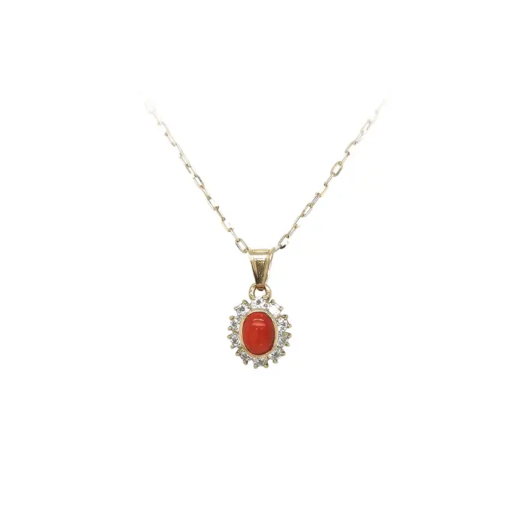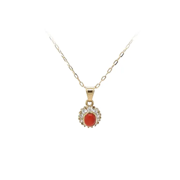 Золотая подвеска с кораллом и цирконами